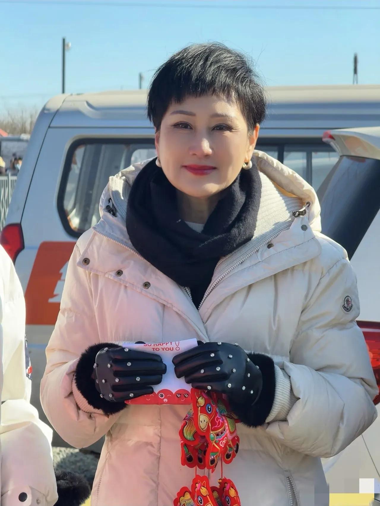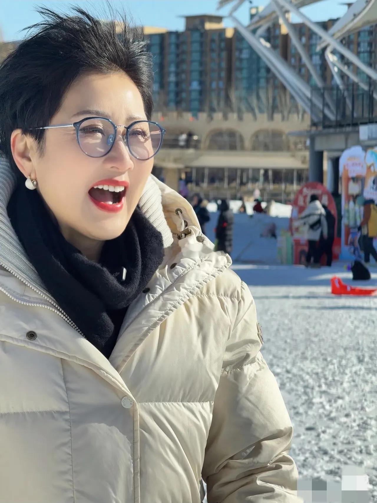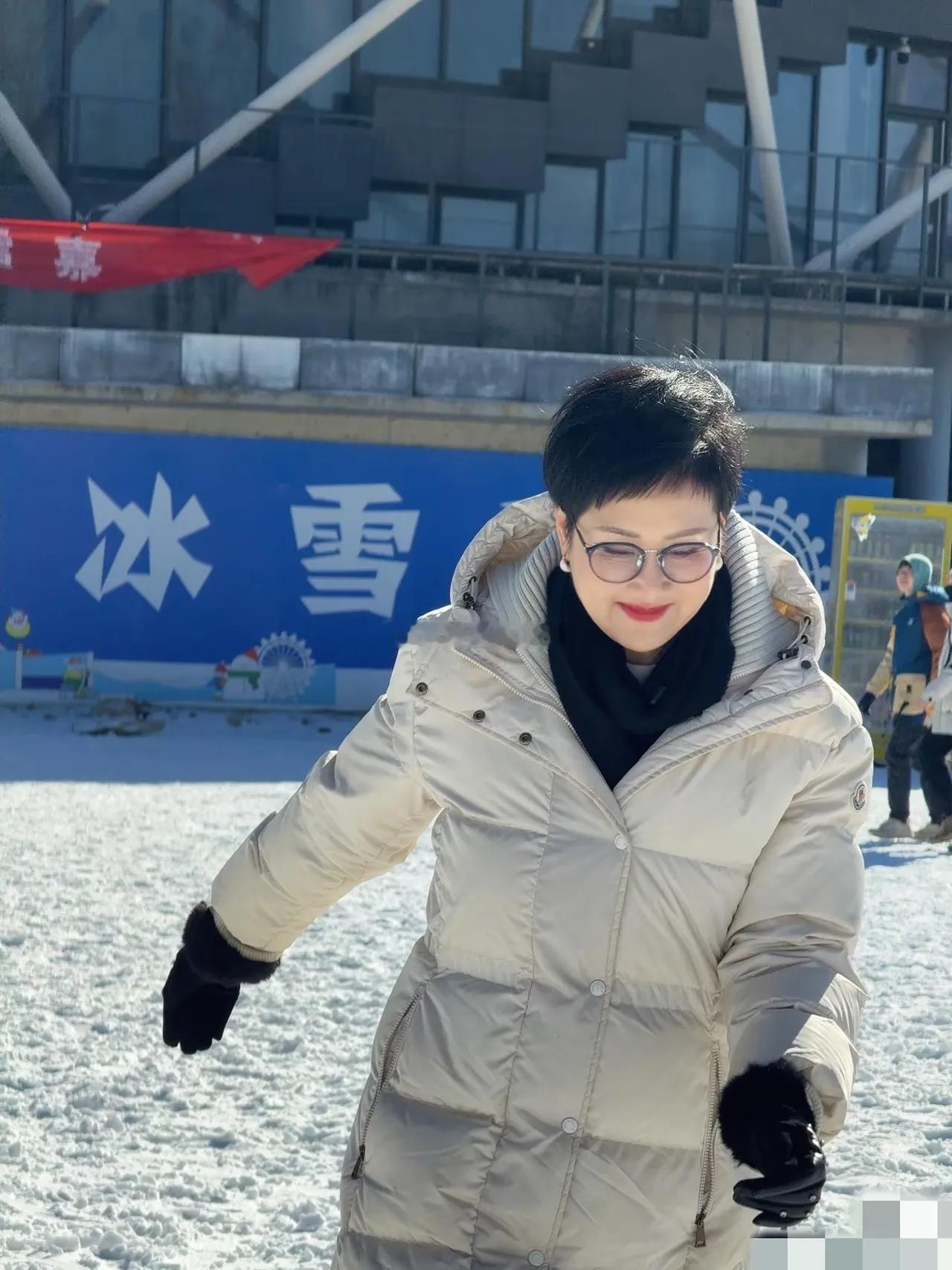 63岁的张凯丽在冰雪大世界里开心快乐的状态,瞬间让人明白上次红毯为啥她敢穿黑丝,优雅大方的白色羽绒大衣,搭配她这一双黑色带钻的保暖手套,精致的妆容看起来比五十多的还要耐看。