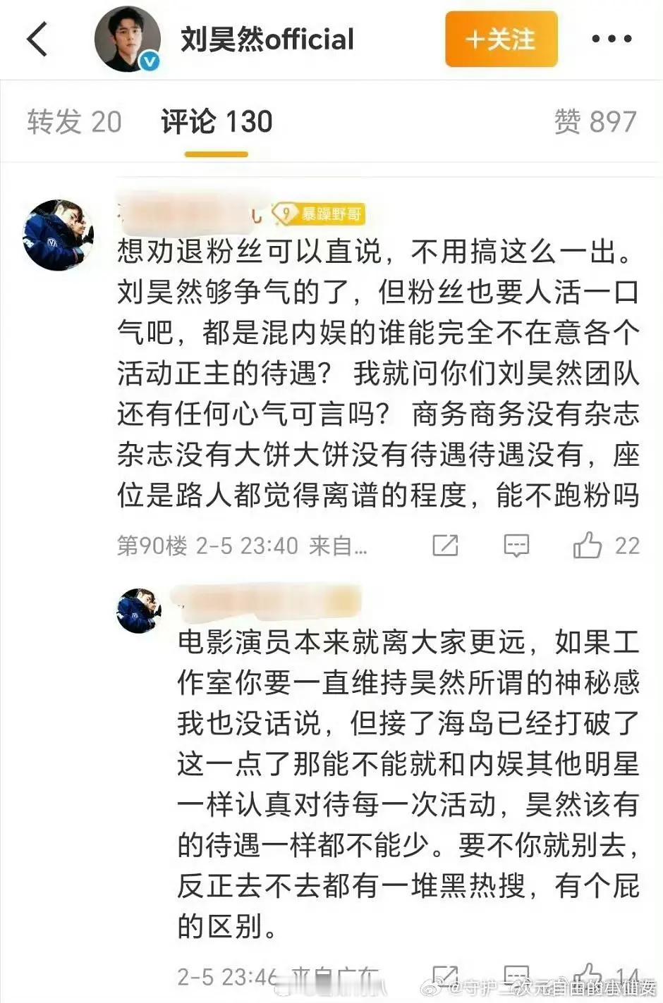 刘昊然粉丝在工作室评论区下面开闹了