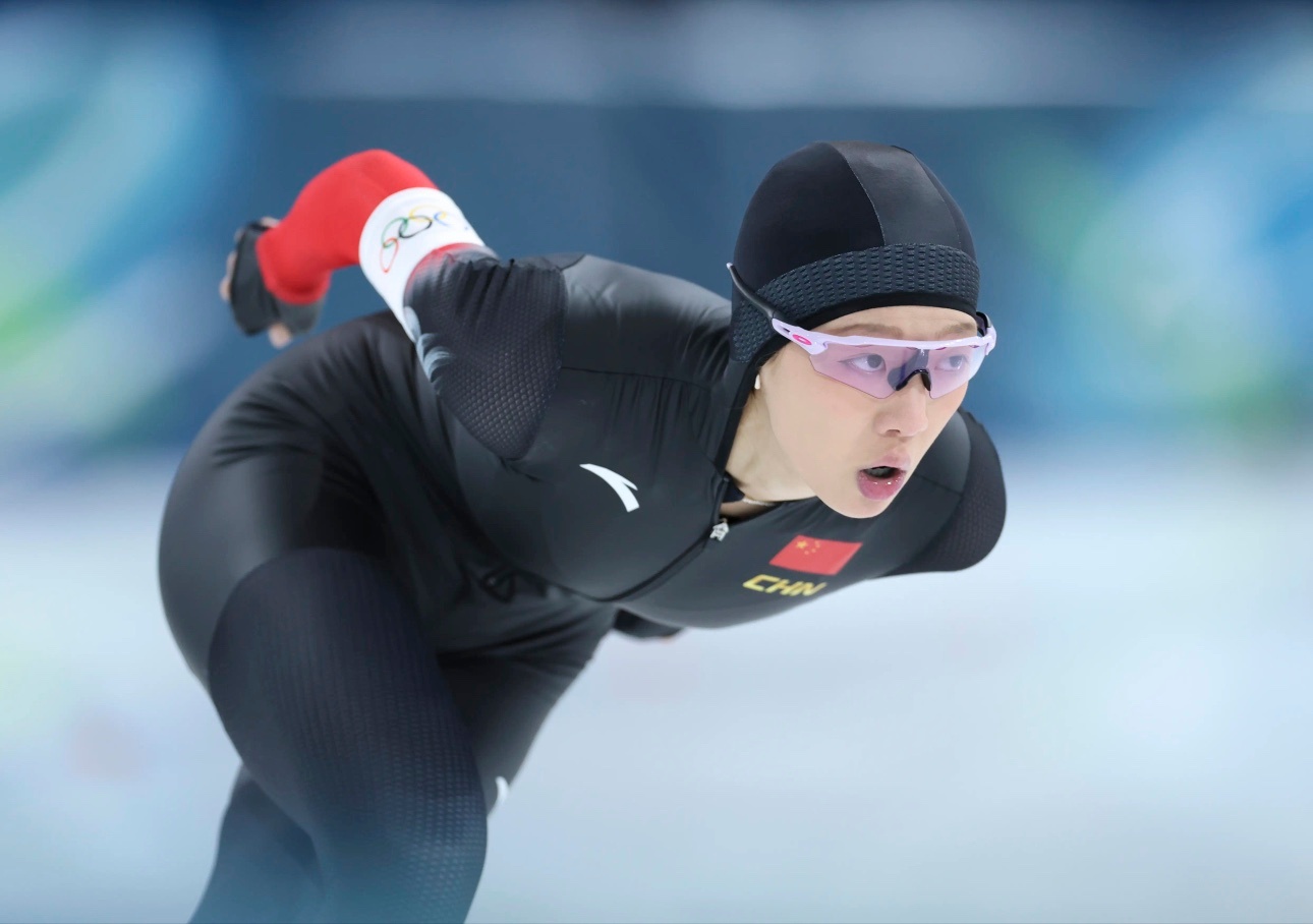米兰冬奥会速度滑冰赛场,女子3000米决赛,中国选手杨滨瑜的英姿,最终她获得第