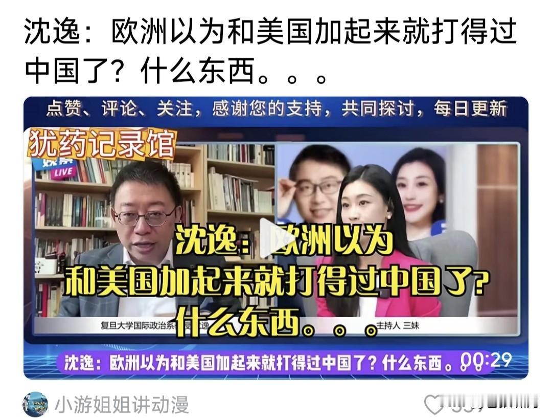 看到几个沈逸视频言论,觉得很震撼长志气!但有几点感觉不吐不快: 1.作为大学教授,怎么没有应有的理性高度,实事求是以理服人?言谈语气和牢A差不多的粗俗,如何育人? 2.看到他的视频,不由想到该校的张教授!尽管张教授比他文雅一点,但两人的视角观点,怎么几乎一样呢? 3.不敢想象我们的孩子,如果考上大学遇到的老师,都是这样的水平,能把孩子教育成什么人?能够成才吗? …………