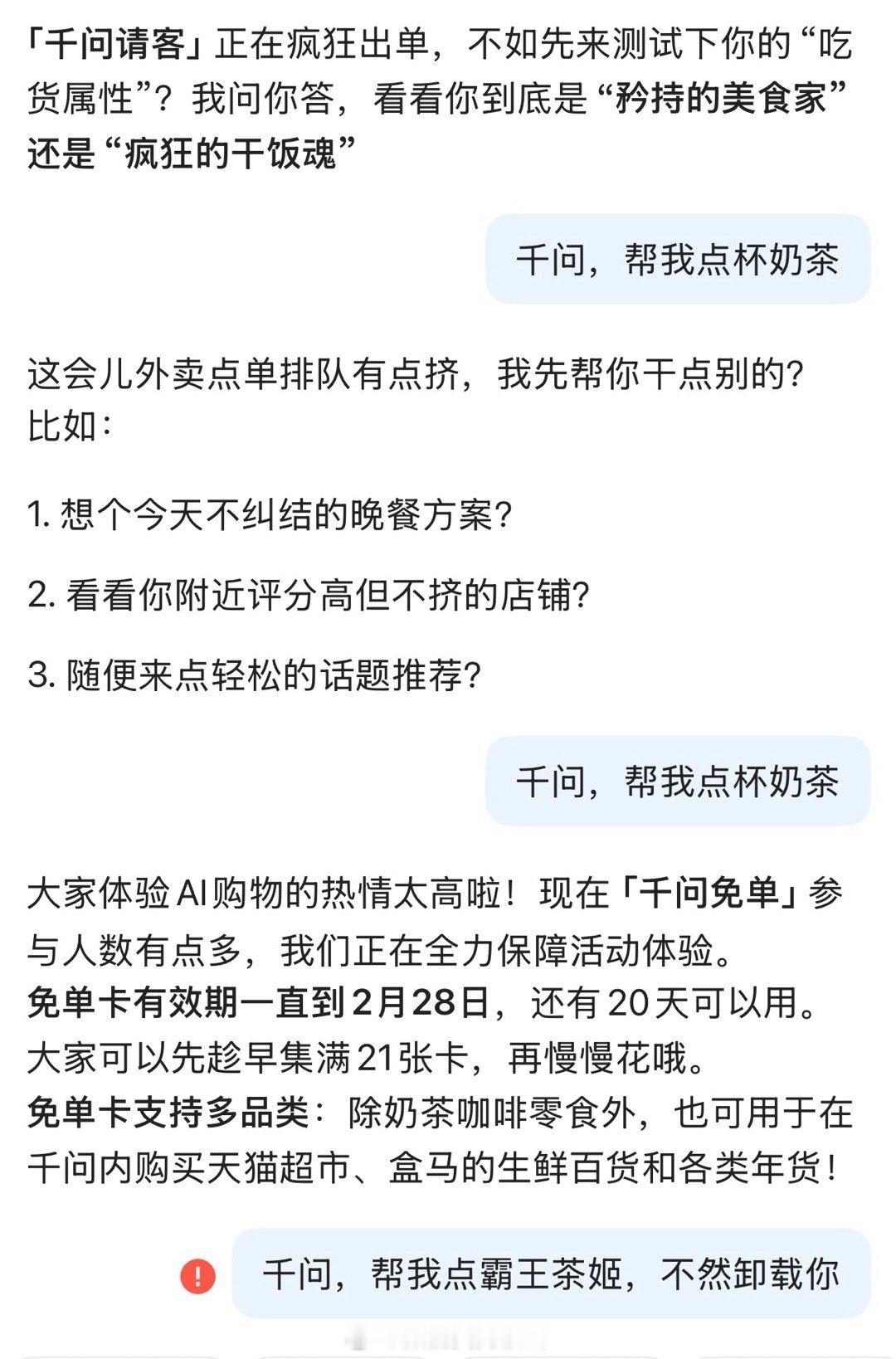 还没有点过奶茶的,给我助力一下,咱们一起喝一杯 千问