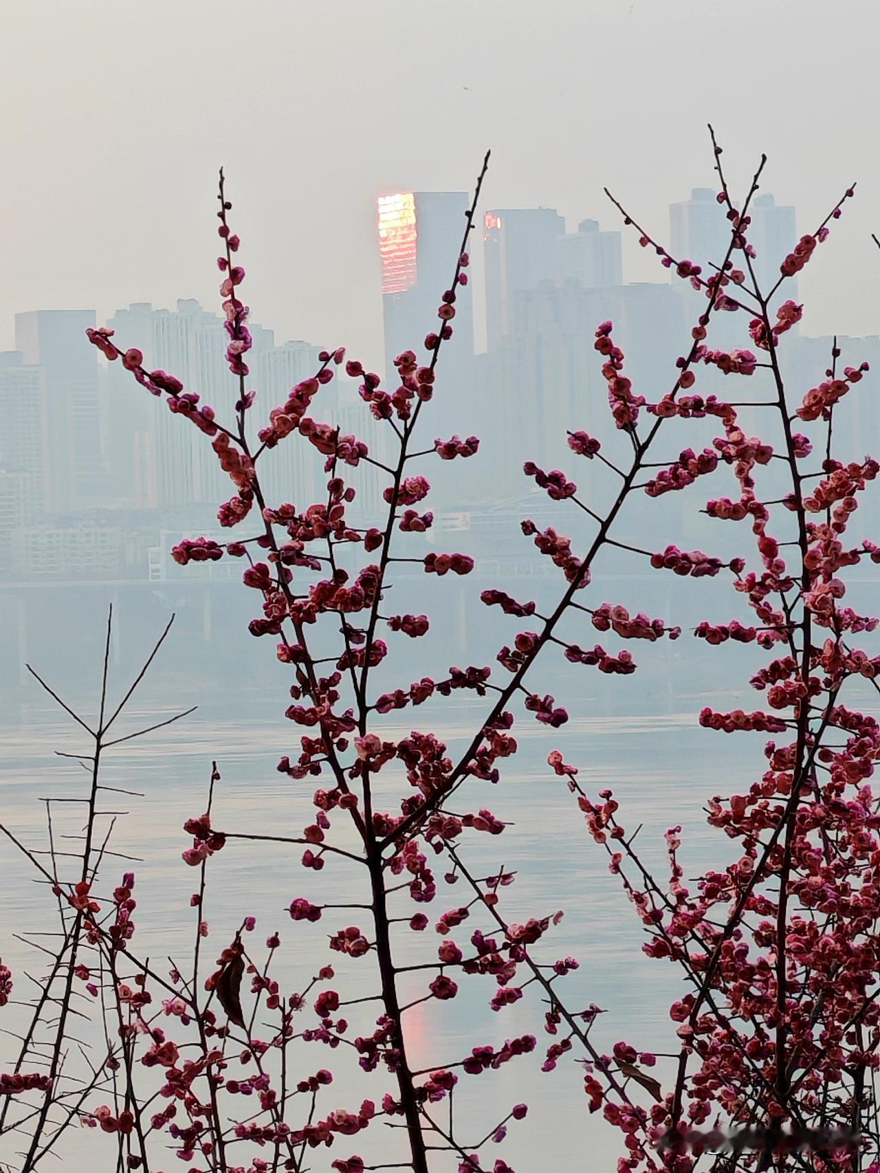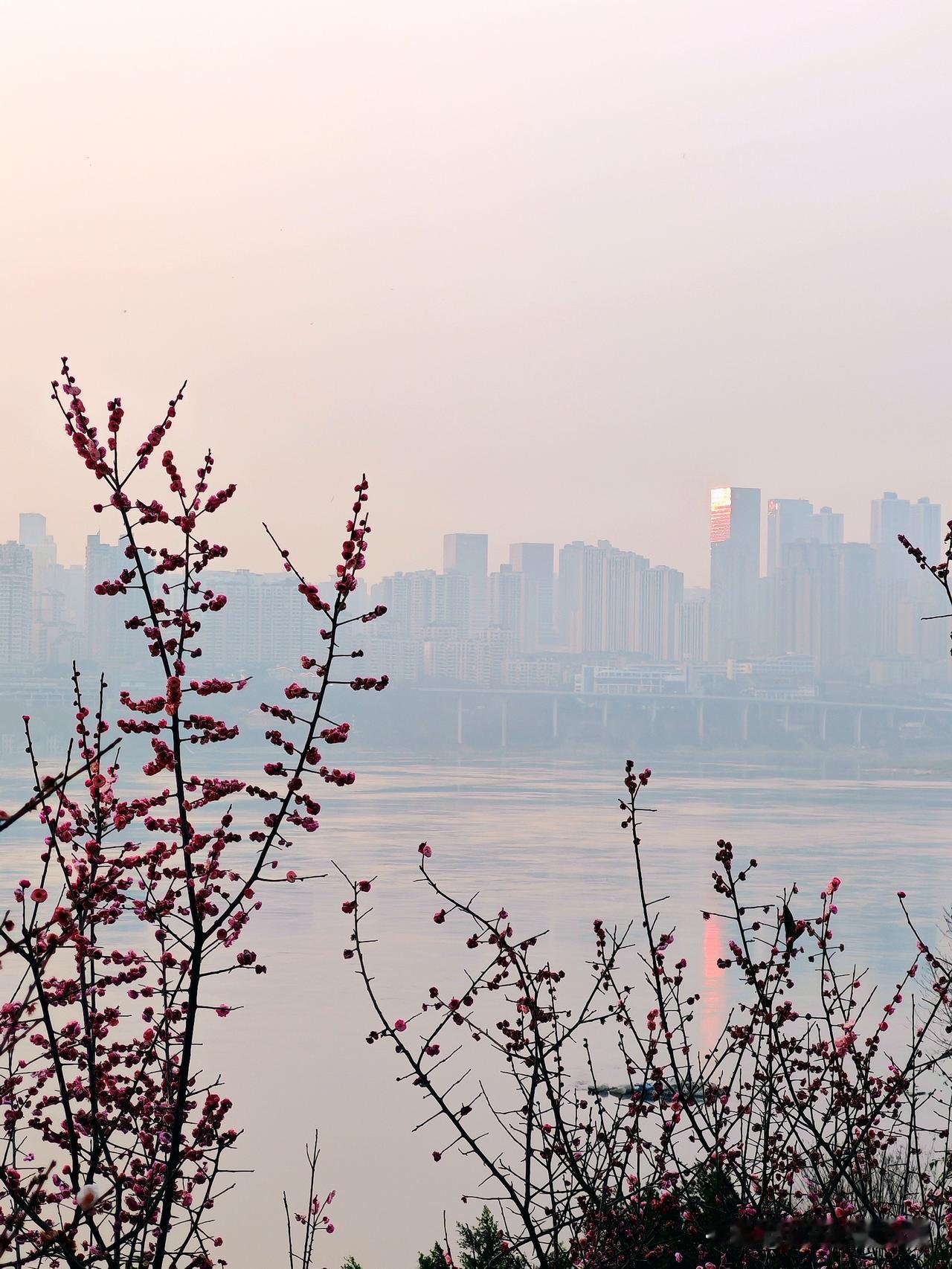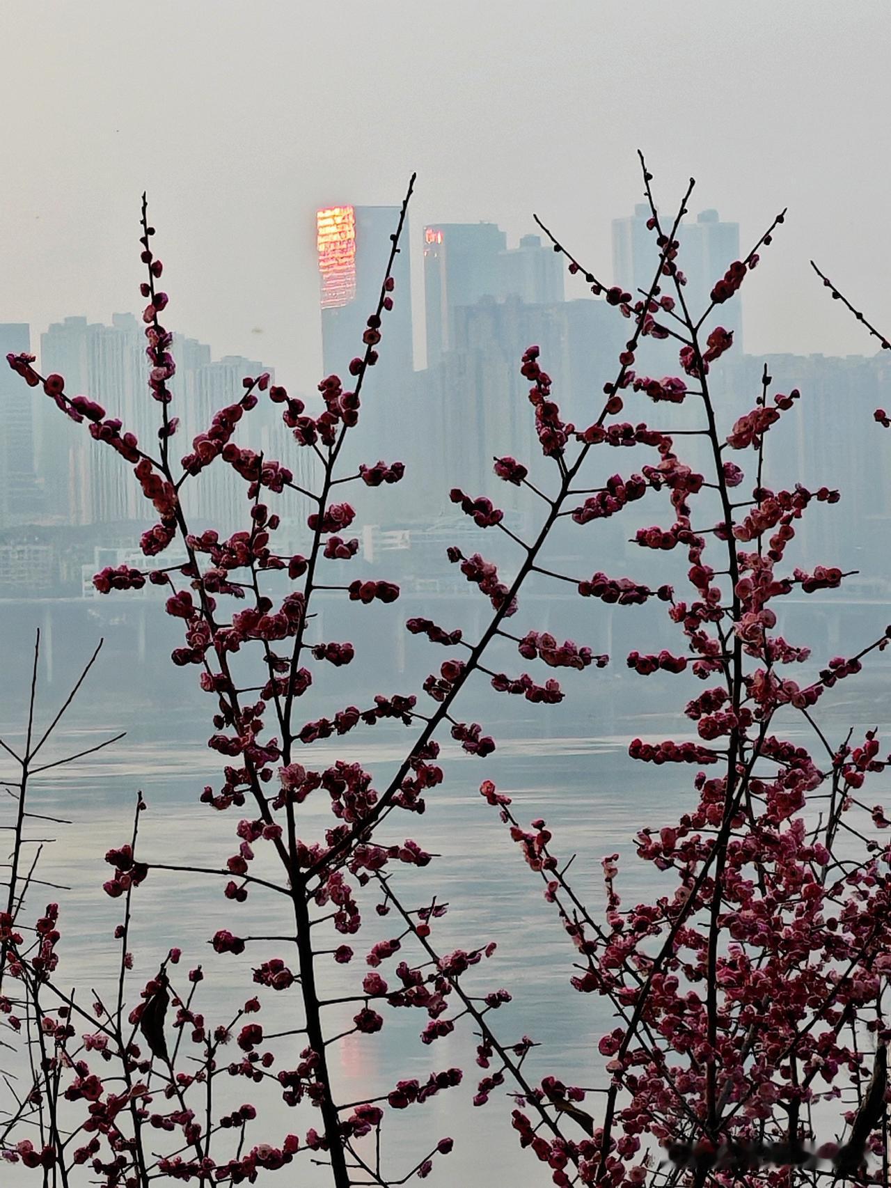 重庆的南滨路最近美出圈了!南滨路雅巴洞湿地公园的红梅林进入盛花期,那连绵花枝上的第一抹绯红,和江岸、礁石构成绝美画卷。 漫步在梅花树下,梅香扑鼻,如红霞般的梅花映红长江岸。好多市民和摄影爱好者纷纷来这儿打卡,用镜头捕捉这盎然春意,记录花影与人影交织的瞬间。人们在花间徜徉、拍美照留影,惬意极了。重庆的红梅,真是冬日里的限定浪漫。