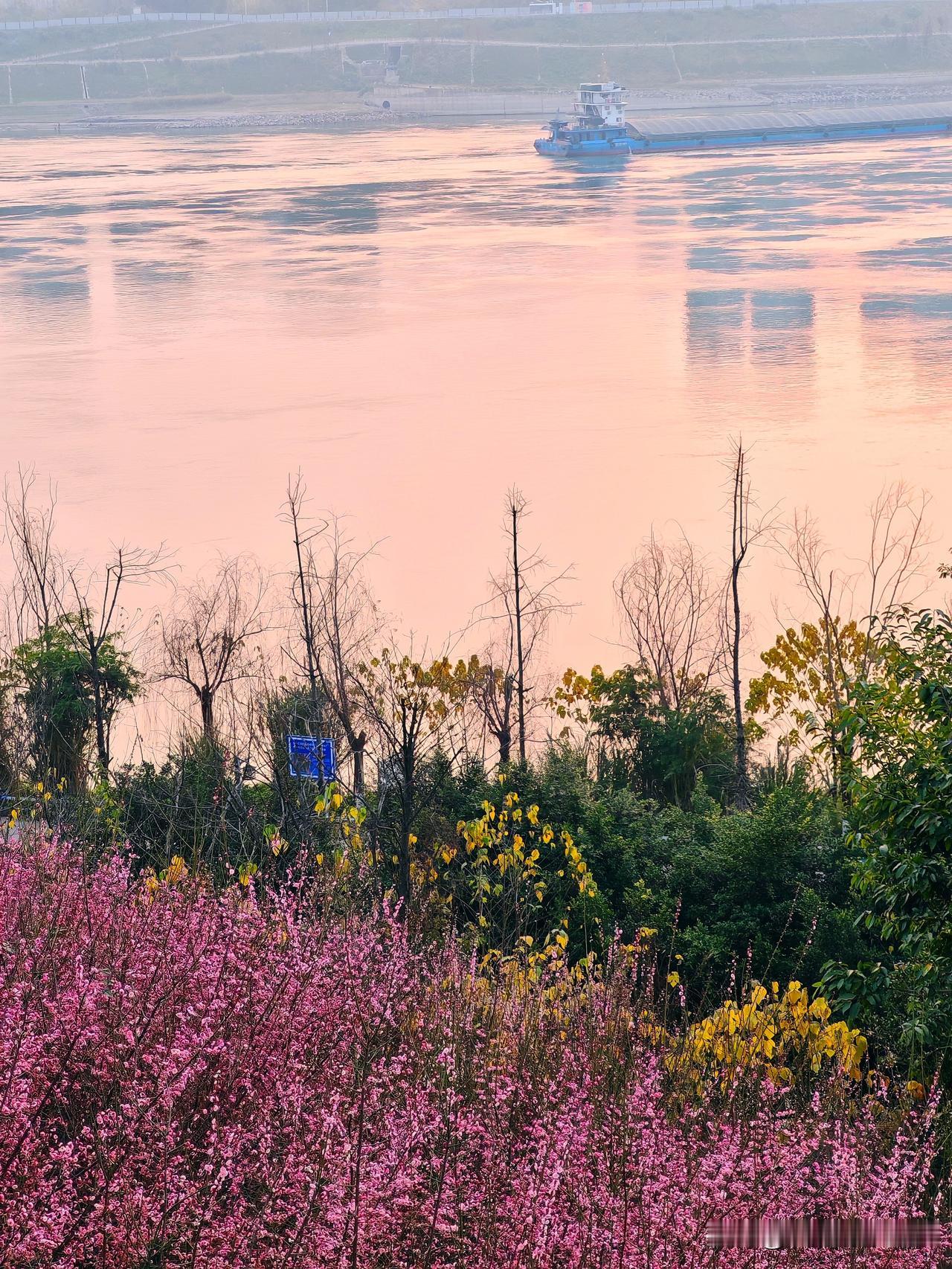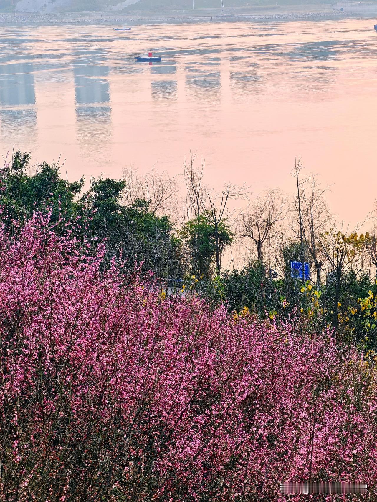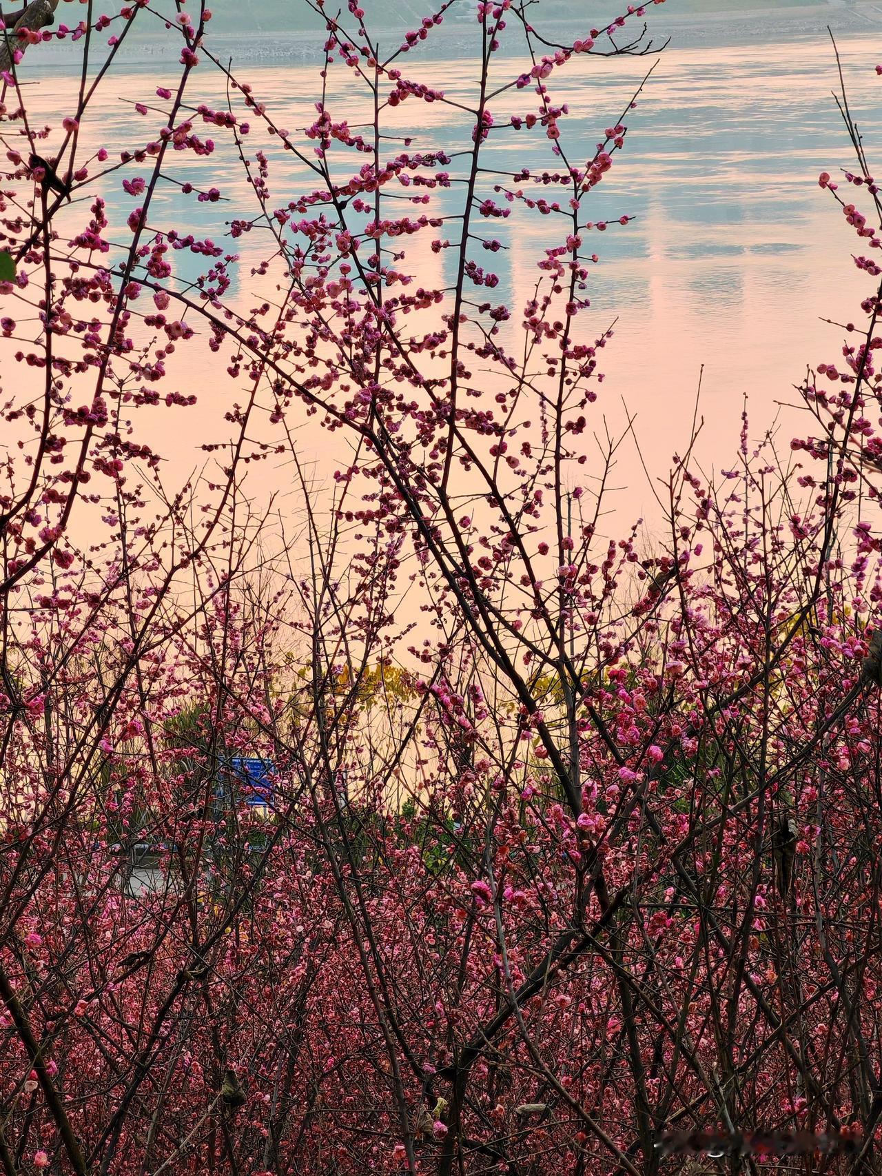 重庆的南滨路最近美出圈了!南滨路雅巴洞湿地公园的红梅林进入盛花期,那连绵花枝上的第一抹绯红,和江岸、礁石构成绝美画卷。 漫步在梅花树下,梅香扑鼻,如红霞般的梅花映红长江岸。好多市民和摄影爱好者纷纷来这儿打卡,用镜头捕捉这盎然春意,记录花影与人影交织的瞬间。人们在花间徜徉、拍美照留影,惬意极了。重庆的红梅,真是冬日里的限定浪漫。