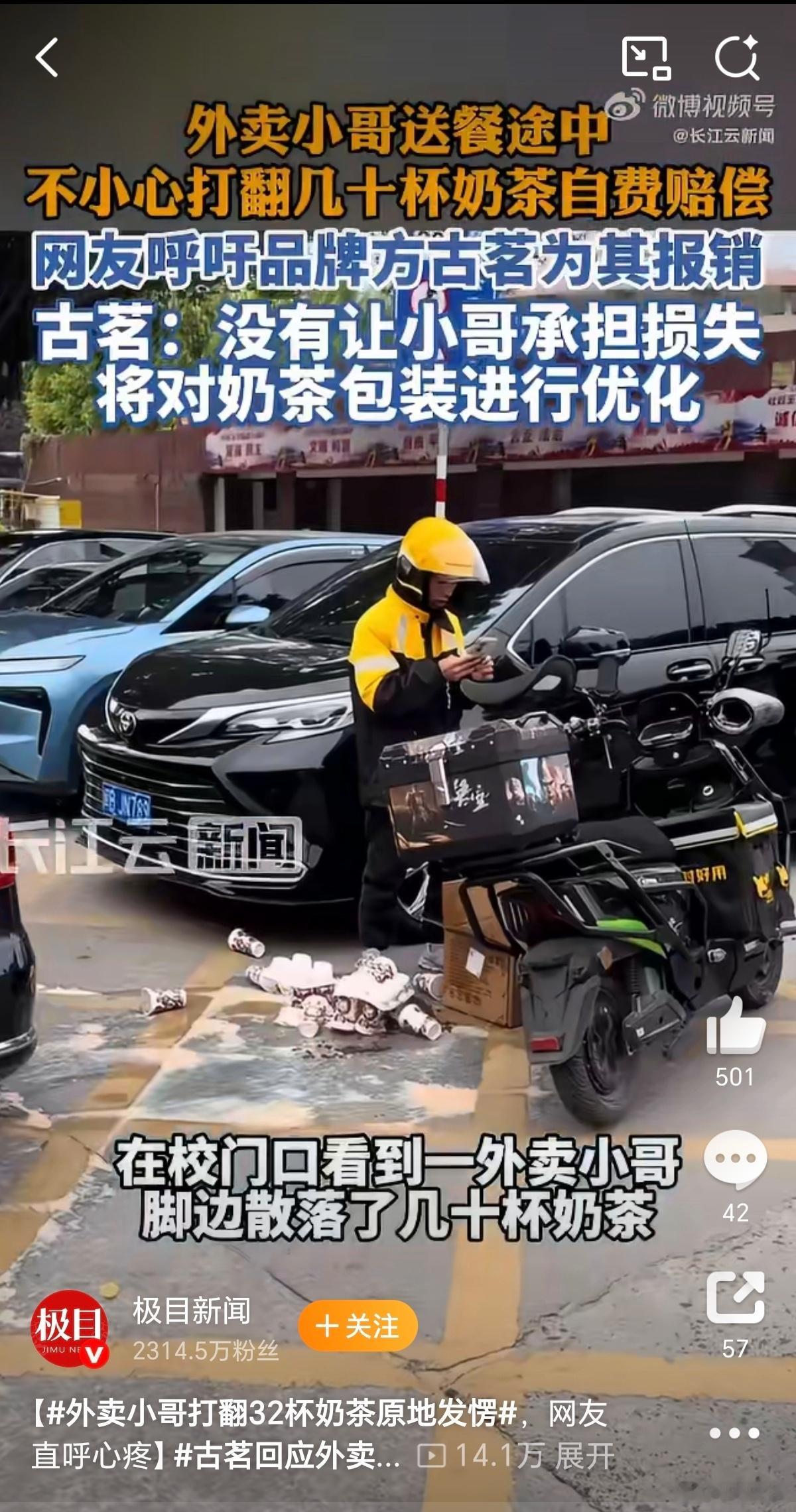 外卖小哥打翻32杯奶茶原地发愣2月6日,知道啥情况了。。。那天好多人都免单的吧,外卖小哥赚点辛苦钱真的不容易,我觉得应该让千问直接给他报销了。