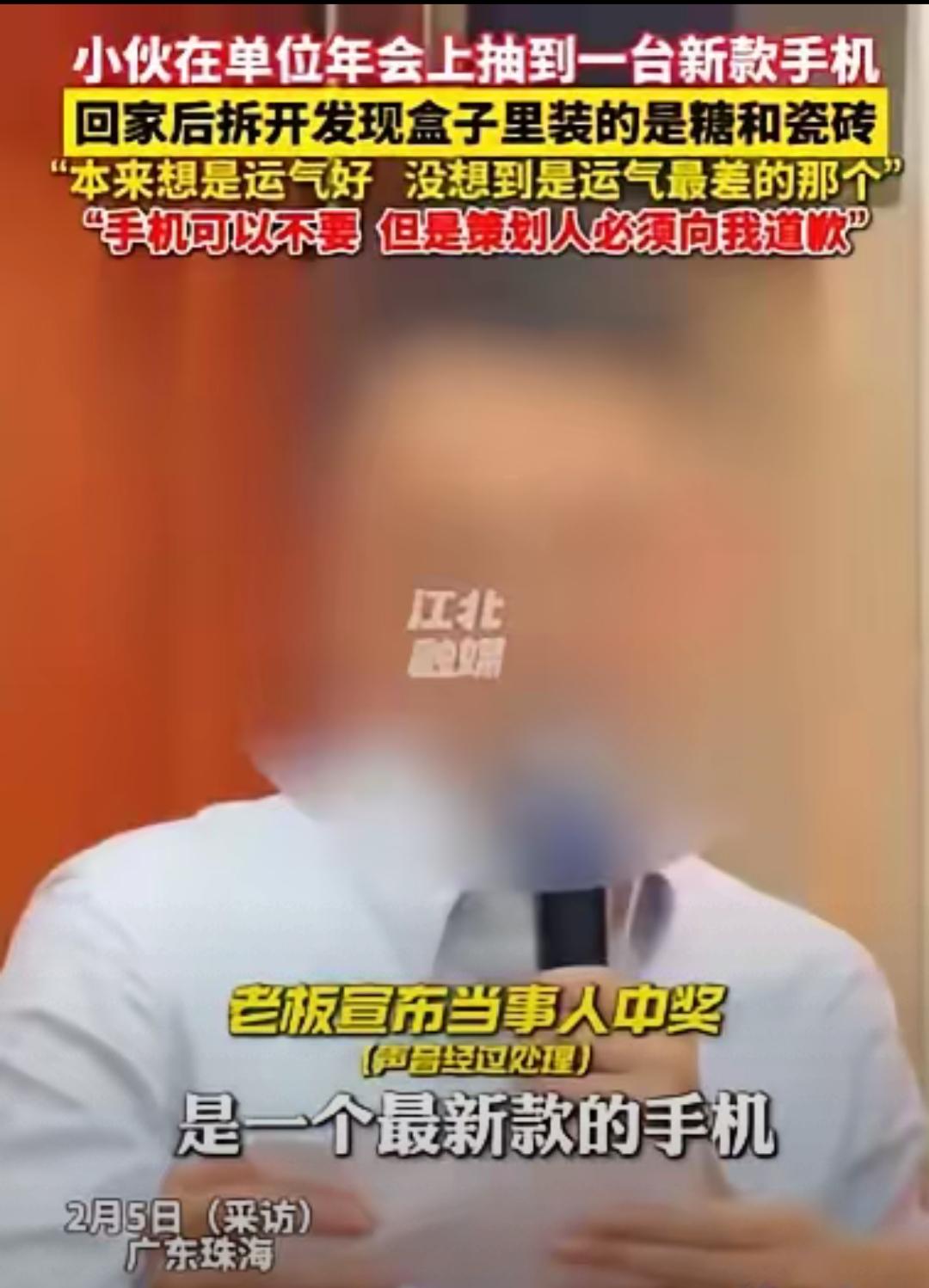 年会抽中万元特等奖本是天大喜事,珠海这位员工却被狠狠泼了冷水。满心欢喜把奖品带回家,想给妻子一个浪漫惊喜,拆开包装却傻眼,说好的旗舰手机变成两块瓷砖,任谁都会又气又委屈。 这件事最让人膈应的,不是奖品被调包,而是打着活跃气氛的幌子,行欺骗之实,把员工的信任与体面踩在脚下。老板不知情、策划人说是玩笑,都不能成为伤害他人的理由。职场最忌讳无底线整蛊,承诺过的奖励就要兑现,这不是小事,是诚信与尊重的底线。 真正好的企业文化,从来不是靠套路博眼球,而是说到做到、真心待人。办不起奖品可以不办,用欺骗糊弄员工,寒的是人心,毁的是公司口碑。 你遇到过类似的职场奇葩事吗?换作是你,会选择隐忍还是维权? 需要我帮你生成适配平台的热门话题标签吗?