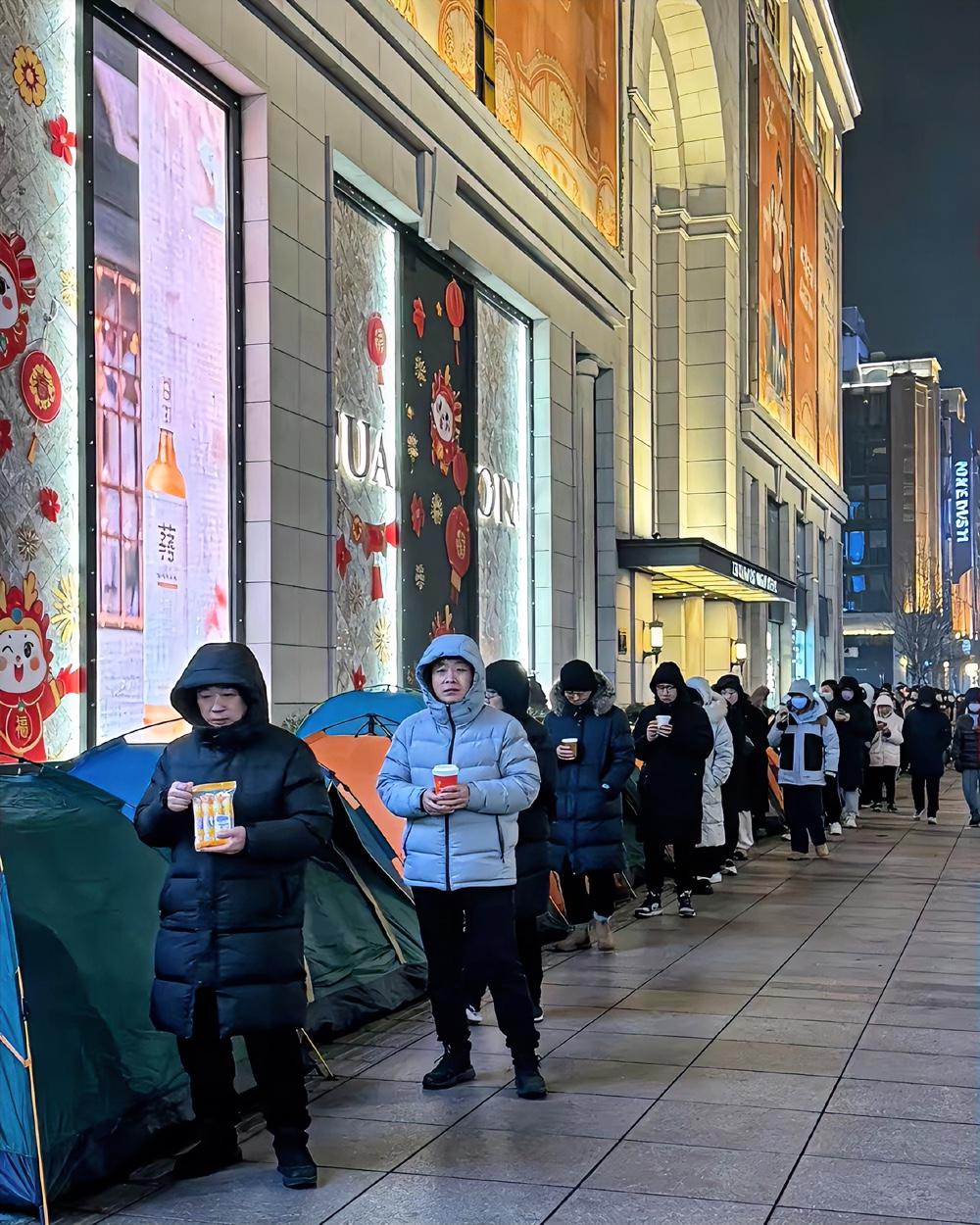 上海南京东路疯了!-1℃寒夜,数百人搭帐篷、裹棉被、全身贴满暖宝宝,提前18小时通宵排队,就为抢新春福袋! 这不是电影里的热闹戏码 是2025年春节前南京东路最真的烟火——主角是新世界大丸百货的新春福袋 把零下1度的风 熬成了暖烘烘的年味儿。 2025年1月中下旬 南京东路飘着碎冷 新世界大丸百货的福袋刚放出消息 凌晨3点街头就排起100人长队 5点破120人 7点超200人 蜿蜒成四五重“蛇形阵” 羽绒服裹着羽绒被 热水袋焐着脚 暖宝宝贴满脖子 有人扛折叠椅 有人搭小帐篷 哈着白气说“值”。 福袋里藏着真金白银的实惠——低至1折的美妆、服饰、家居品 网友晒出的福袋有SK-II小样、优衣库羽绒服优惠券 总价2000元的礼包 福袋价才200元 比网上蹲券还实在 商场也懂人心 提前半小时开门 端出热玉米汁、红茶 递上小马气球 舞龙舞狮一闹 排队的冷意全散成笑声。 为什么零下1度还要拼?原因有三: ① 福袋是“捡漏王” 1折的实惠 比蹲直播间还香; ② 仪式感是年的魂 一年一次的热闹 像小时候跟着爸妈抢年货 要的就是“挤”出来的年味; ③ 商场会“暖场” 热饮、舞狮把排队变成“聚会” 不是熬时间 是凑年的热闹。 上海人的年味儿从不是“躺平” 是刻在骨子里的“仪式感强迫症”——以前抢粮票要排队 现在抢福袋也要排队 变的是商品 不变的是“要个好彩头”的热乎劲儿 福袋里装的不是东西 是“今年会更好”的期待 连旁边的禧市集都跟着火了 卖春联的、捏糖人的 都沾了福袋的光。 有网友笑说“上海男人太拼了!零下温度搭帐篷 就为老婆开心” 其实哪是怕老婆 是把“宠”揉进了年里 就像阿姨带孙辈排队 说“热闹才叫过年” 不是为盲盒 是要让孩子记住“年是挤出来的”。 我觉得这不是“疯” 是上海人对年的“执念”——零下1度冻得住手 冻不住想凑热乎的心意 福袋的意义不在“抢” 在于“一起等”的过程 就像小时候等春晚 熬的不是时间 是盼头。 你过年有没有为仪式感拼过?比如排队买年糕、抢春联?