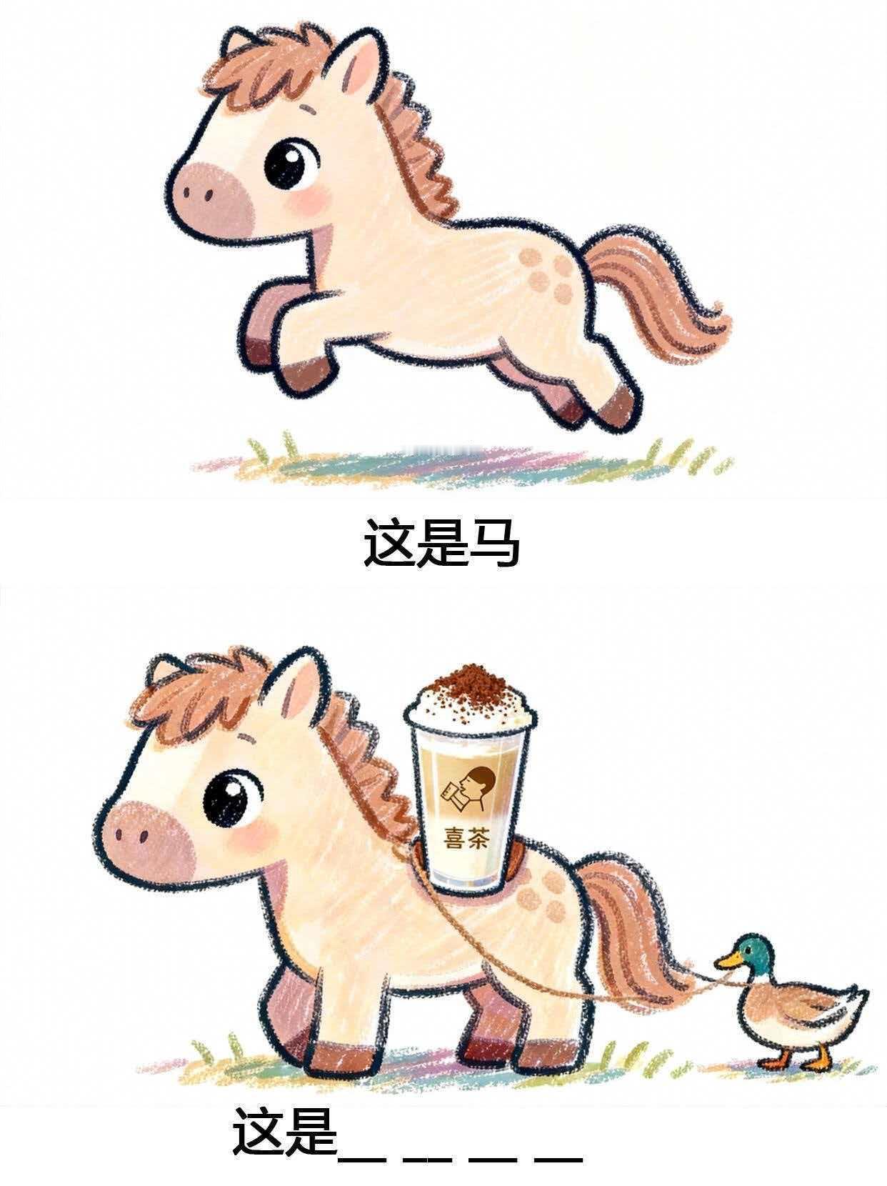 马年就要玩“马”的抽象谐音梗 年除了要玩“马”的谐音梗,还喝“马”的饮料,新年第一杯好运茶被喜茶拿捏了!空气马斯卡彭英红直接把「Horse事发生」喝进嘴里~谁懂啊!意式马斯卡彭打发的空气感云顶duang到心巴上,咸甜交织的乳酪香裹着醇厚英红茶底,丝滑不腻还带淡淡回甘,在马年喝马斯卡彭,我们都要“马”上暴富,烦恼“马”上清零!喜茶马斯卡彭 空气马斯卡彭 空气马斯卡彭英红 喜茶空气马斯卡彭 喜茶 新年 马年 抽象 谐音梗
