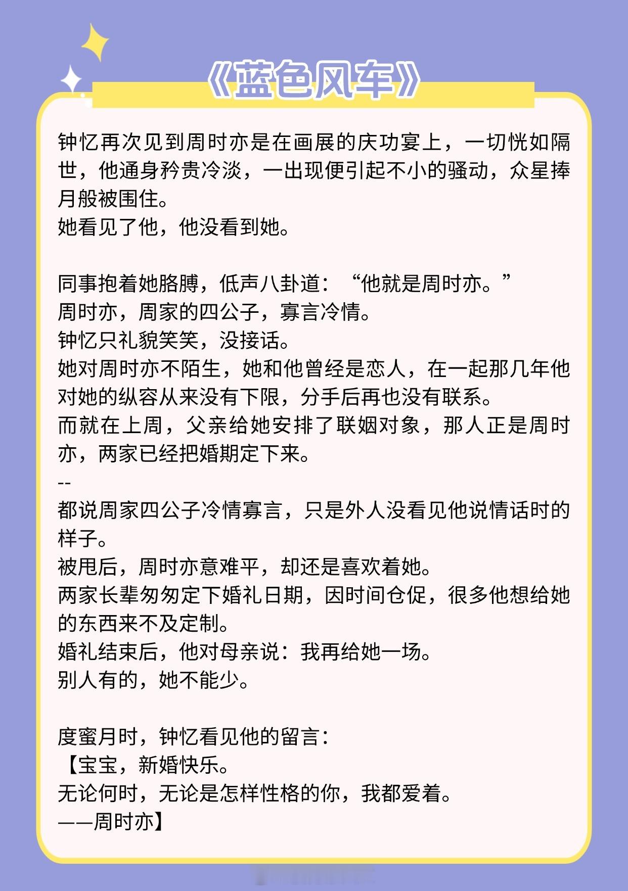 《盛夏一个游》作者:纯圆皇后《蓝色风车》作者:梦筱二《夜半小静桥》作者:苏格兰折耳猫《荡失》作者:空壳面包《黄雀风》作者:瞰雾《撕破假面》作者:柴胡金推文言情小说推荐推文