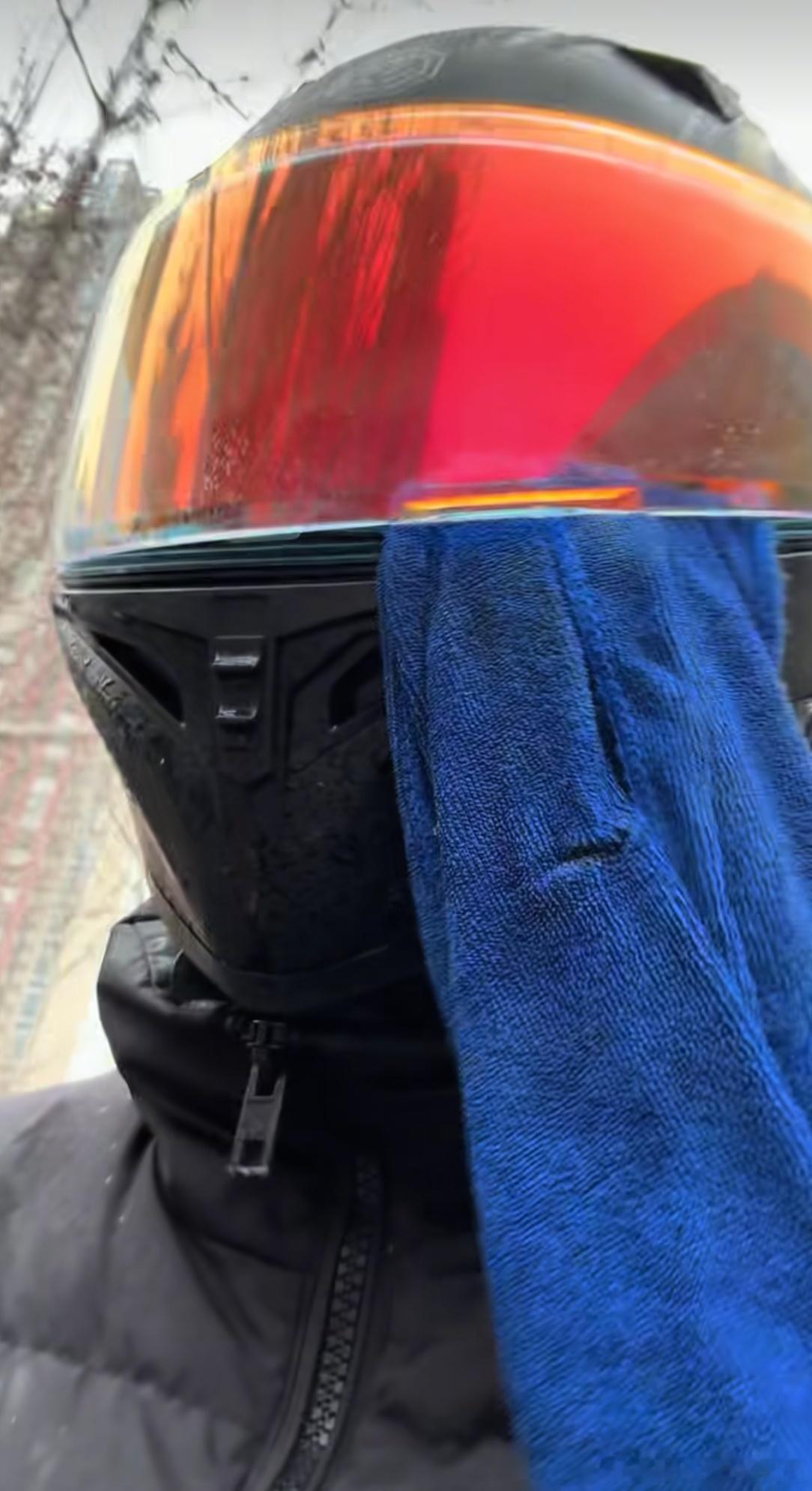 寒假骑车才发现 在头盔外面塞一块抹布下雨天就不怕头盔有雾了