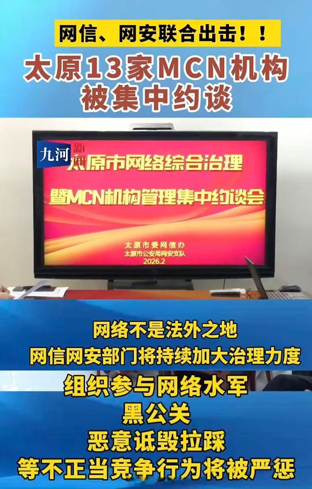 这波干的漂亮!太原网信联合网安约谈了13家MCN,打击网络hei公关