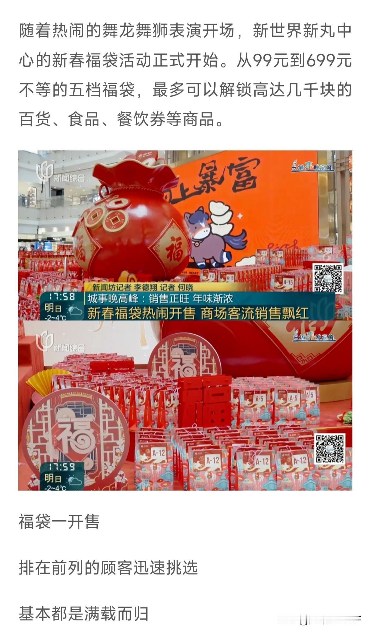 上海南京东路彻底燃爆新春氛围!零下1℃的寒夜,冷风刮在脸上刺骨,可这条魔都核心商圈的街头,却涌动着滚烫的热情,数百名市民为抢新春福袋提前18小时通宵排队,硬生生把冬日的清冷熬成了热闹的集市。 现场随处可见硬核的“御寒装备”:有人支起便携帐篷挡风,有人裹着厚棉被蜷缩在折叠椅上,还有人浑身上下贴满暖宝宝,从脖颈到腰腹层层叠叠,羽绒服、围巾、手套全副武装,即便抵不住寒风里的哆嗦,也没人愿意挪动半步。夜色渐深,排队的队伍越拉越长,蜿蜒绕着街边延伸,昏黄的路灯映着一张张期待的脸庞,让零下的街头满是人间烟火气与浓郁新春仪式感。 有人天还没黑就赶来占位,守着漫漫长夜只为开售时抢到心仪档位;有人约上家人朋友结伴而来,一边相互依偎取暖,一边聊着新年的期许,把一场通宵排队变成了独属于新年的特别相聚。寒夜里的等待虽难熬,可想到福袋里的超值惊喜,所有人都觉得这份坚守格外值得。 此次新春福袋共设99元到699元五档价位,百元出头就能解锁高达几千块的百货、食品、餐饮券等好物,性价比直接拉满。有市民开心分享:“原价两千多的东西,我299就拿下了,相当于打1折,太划算了!昨天晚上排一晚上也没有白排,大家都买得特别开心。福袋里吃的、用的、玩的样样都有,能买到这么多东西,钱完全没有白花!” 零下1℃的严寒,终究挡不住魔都人对新年的美好期盼,更挡不住这份薅新春羊毛的热烈欢喜。南京东路的寒夜排队名场面,不仅是一场超值的福利狂欢,更成了这个春节最鲜活、最热闹的年味注脚。