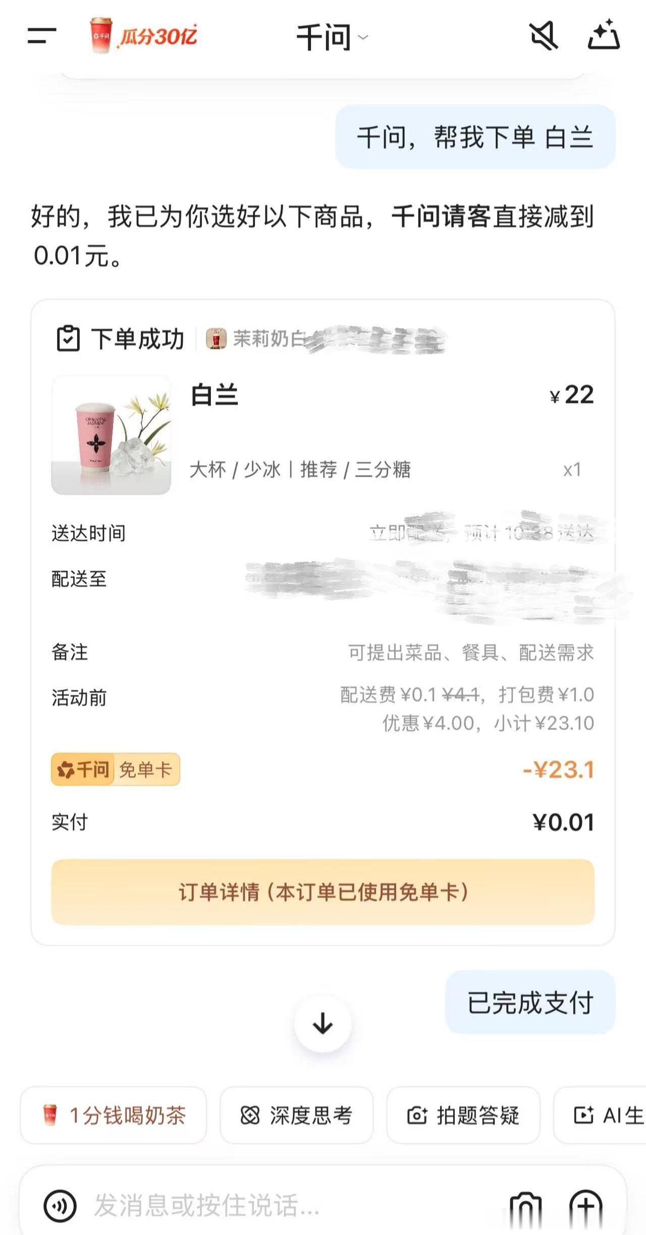 千问免完你的免你的 差点就点卸载了,看在免单卡的面子上先忍一手!不在乎优惠多少,