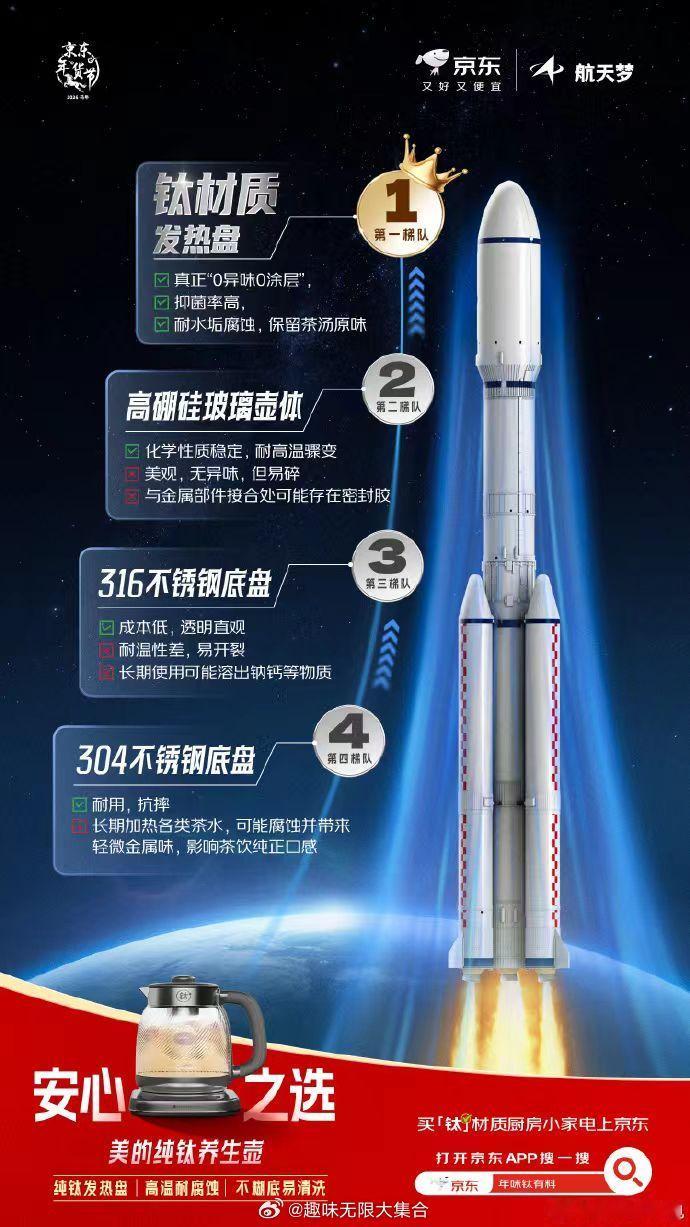 老一辈做饭好吃的原因在中国航天的宏大叙事中,一枚重达数十吨的可重复使用火箭,与一只小小的钛材质厨房小家电、一块在太空烤出的肉,有着同等重要的意义。火箭的回收,关乎关键技术的突破。它需要攻克高温烧蚀、精准控制、多次点火等一系列世界级难题。钛材质厨房小家电的出现,则关乎日常生活的温度。它要解决微重力下的轻便耐磨、均匀加热、无异味抑菌、更要吃的健康这些多重标准和直接影响餐桌体验的众多细节。正是这些从宏大工程中积淀的航天科技,让曾经遥不可及的太空探索,透出触手可温的人情味;也让高高在上的国家工程,与普通人家的厨房产生了奇妙的联结。中国航天的动人之处,恰恰在于它既能够托举巨箭巡天,也愿意俯身回应每一名航天员“想吃口热乎饭”这般朴素的愿望。年味钛有料