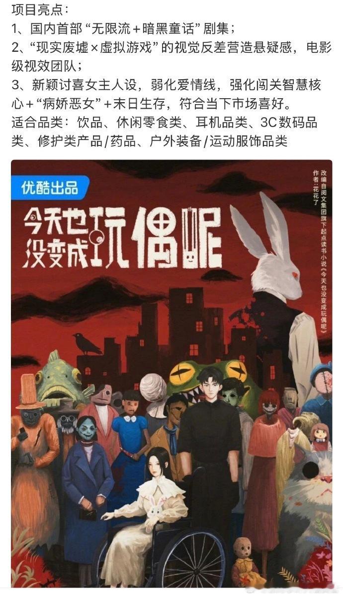 陈都灵新剧开拍四天就招商今天也没变成玩偶呢招商 刚开拍四天就招商,陈都灵这部无限流暗黑童话剧,在题材上很有辨识度。