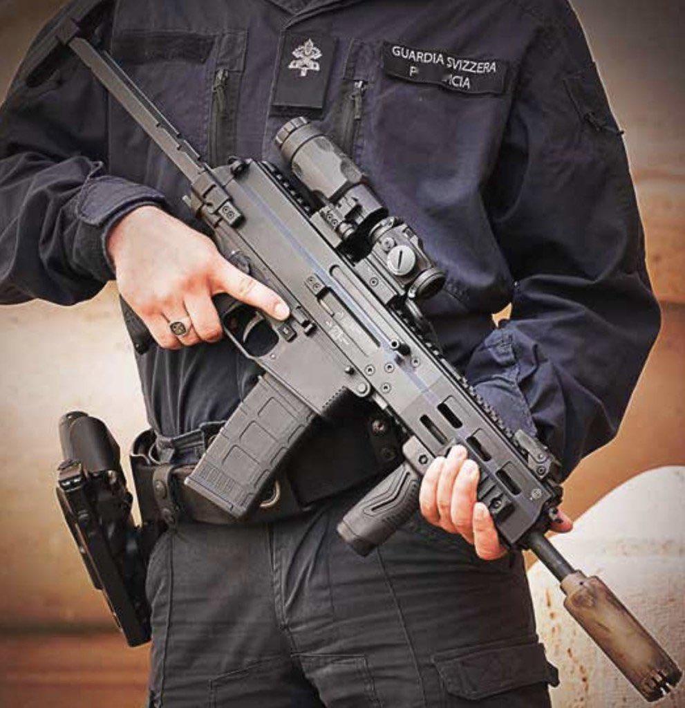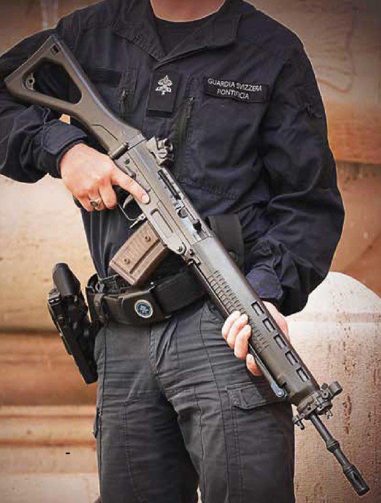 教皇瑞士卫队的标志性16世纪礼仪制服和长柄斧与他们实际使用的现代瑞士制造枪支(包括SIG SG 550突击步枪和SIG MPX冲锋枪)进行了对比。 瑞士卫队成立于1506年,是梵蒂冈最小的常备军,其135名成员接受严格的训练,将历史悠久的仪仗传统与现代安全战术相结合,例如图片中展示的狙击技能和实弹射击训练。 这组图片来介绍瑞士卫队的发展演变,并指出他们为了在日益严峻的全球威胁下保护教皇,已从使用长柄斧转变为使用格洛克19手枪等半自动武器。 士兵的标牌上写着”教宗瑞士卫队“