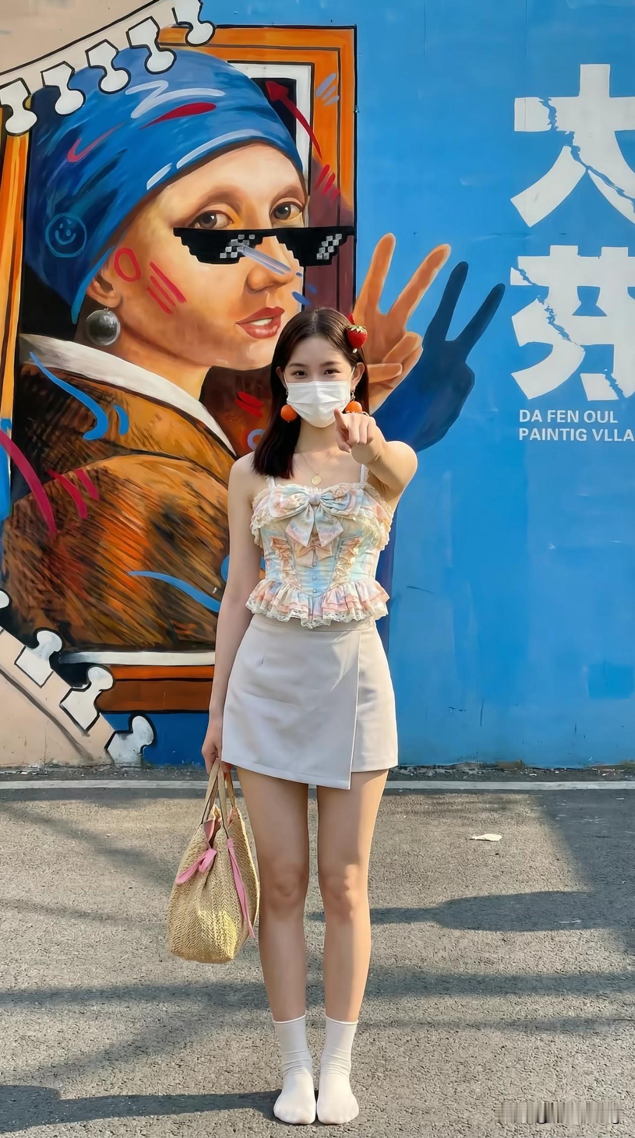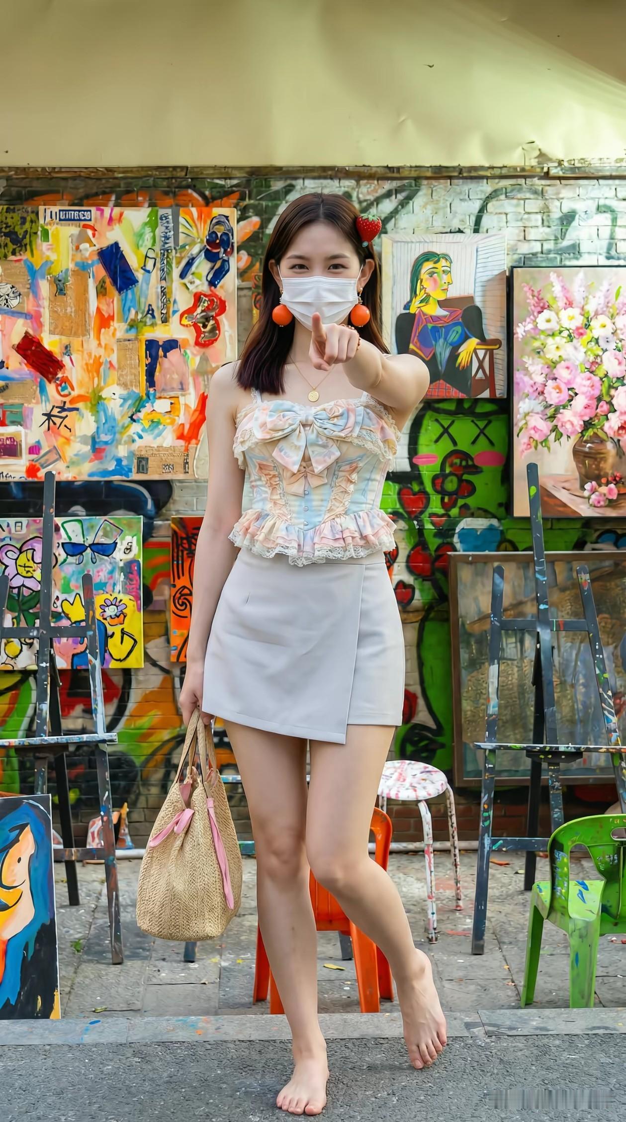 🎨 艺术街拍 | 今日份的浪漫与活力都在这里! 站在色彩斑斓的画作前,仿佛走进了童话世界~ 吊带蝴蝶结上衣 + 简约短裙,温柔又俏皮; 草莓发夹+橙色耳环,细节里藏着少女心; 赤脚漫步,手提草编包,自由随性才是夏天的打开方式! 📍打卡地:街头艺术区 📸随手一拍都是大片感 街拍 艺术街区 夏日穿搭 OOTD 少女感穿搭 拍照圣地