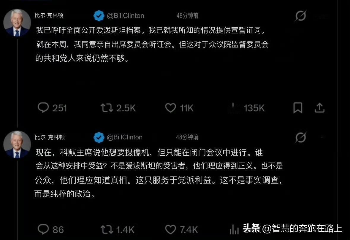克林顿要求公开爱泼斯坦案卷,这是以退为进,真公开了,美国两党全部有政客卷入,大家