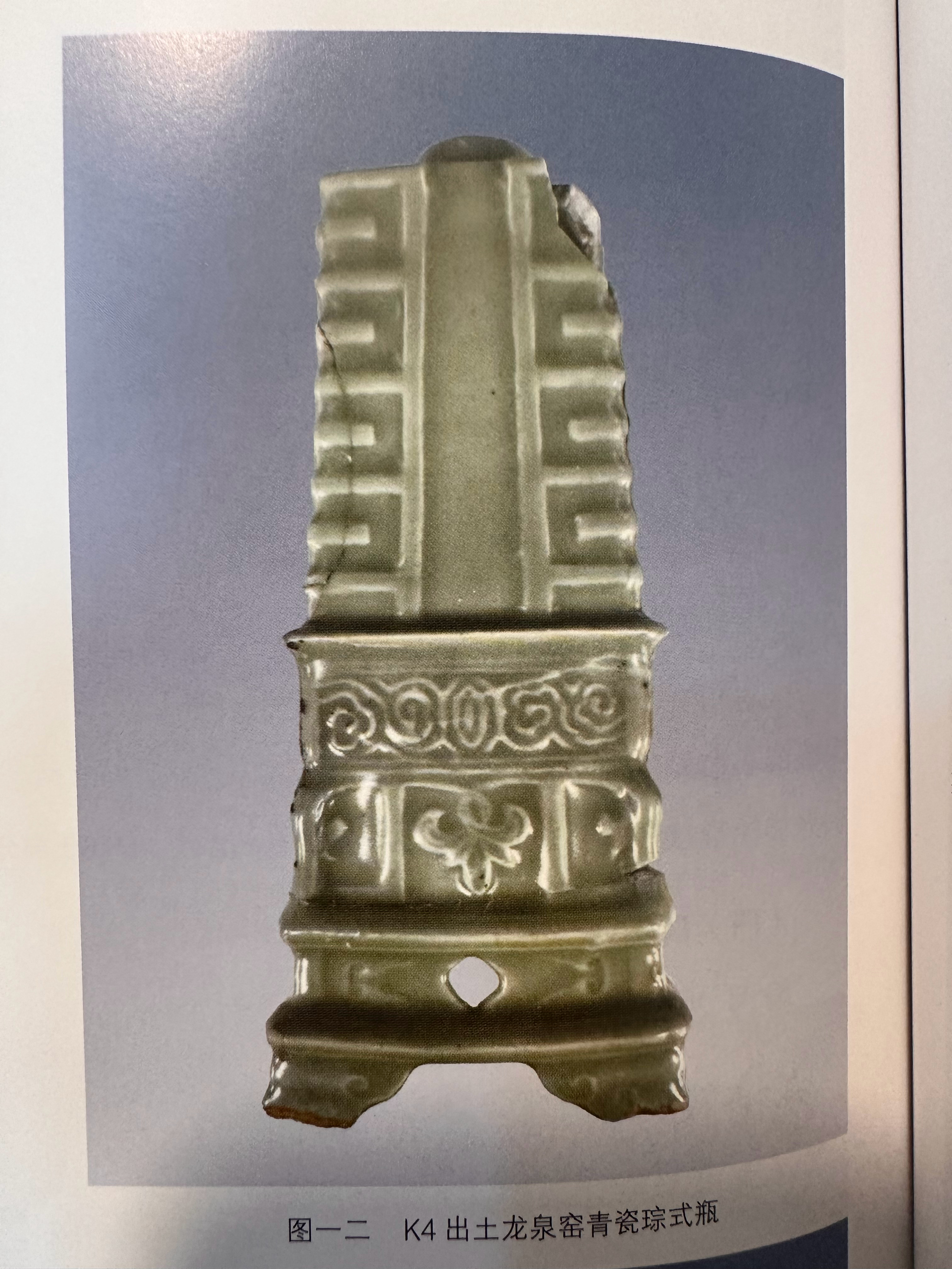 长沙开福区五堆子遗址考古发掘出土的宋代砖砌窖藏坑,目前能看到一个龙泉窑琮式瓶,形式为瓶-瓶插-底座三合一,一个木框已经腐烂的青石桌屏,宋代屏心还是很罕见的,遗址本身性质可能为长沙府城北部的一处宋代书院或祠庙遗址