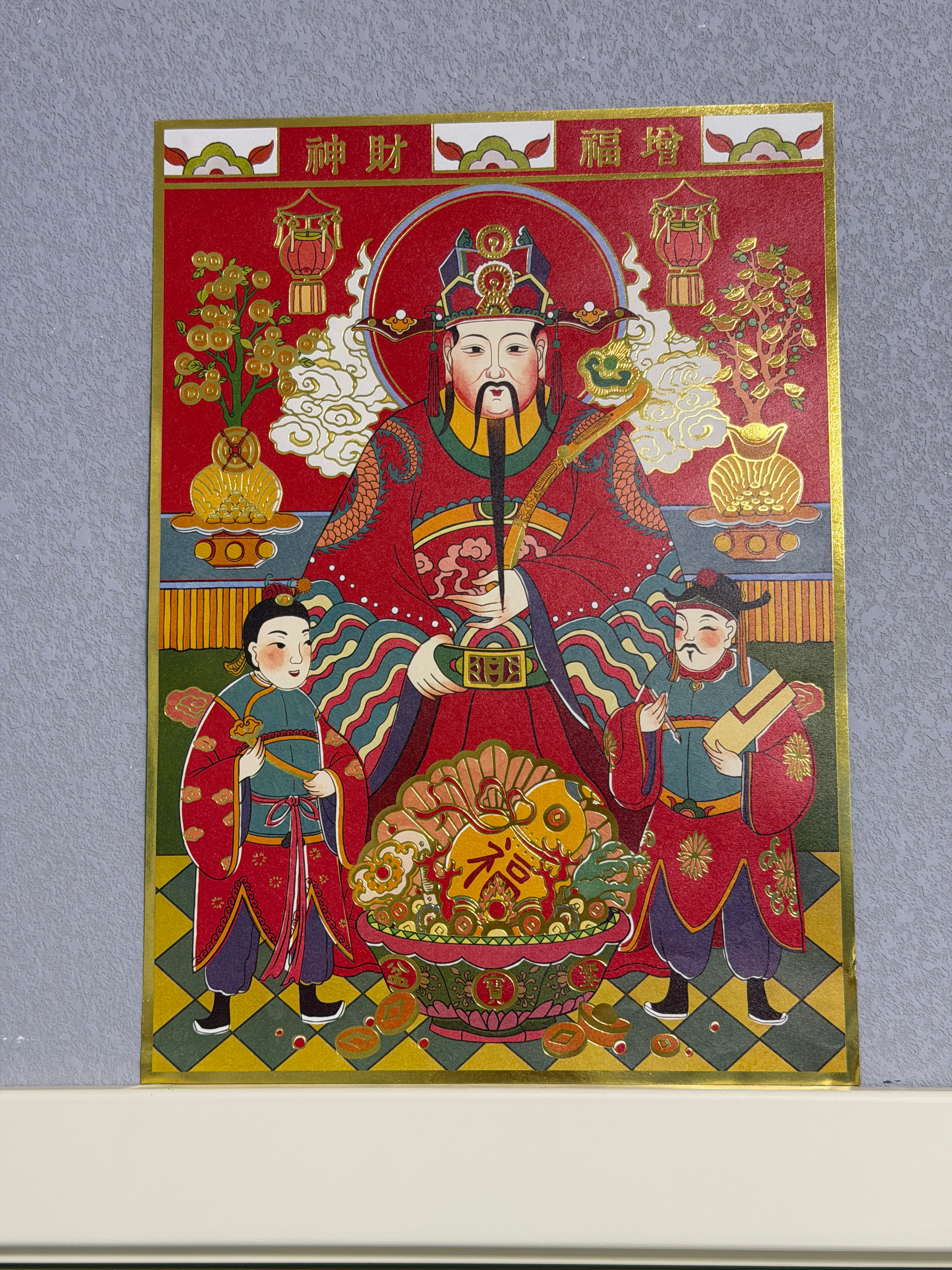 财神爷我请在门上面了,希望今年大家都能财源广进!