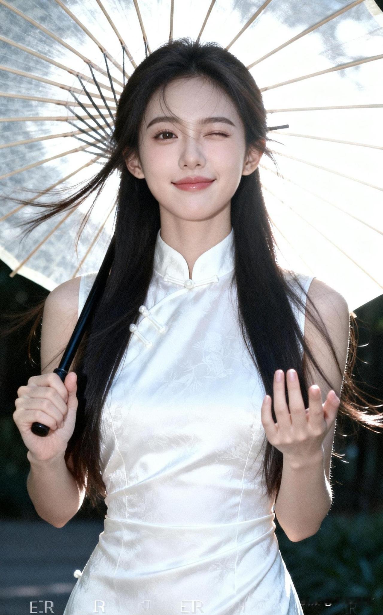 撑伞迎风立,笑语入画来。