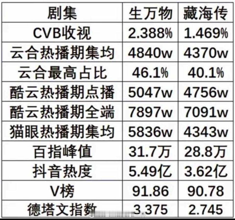 tg 《生万物》《臧海传》全平台数据对比🆚