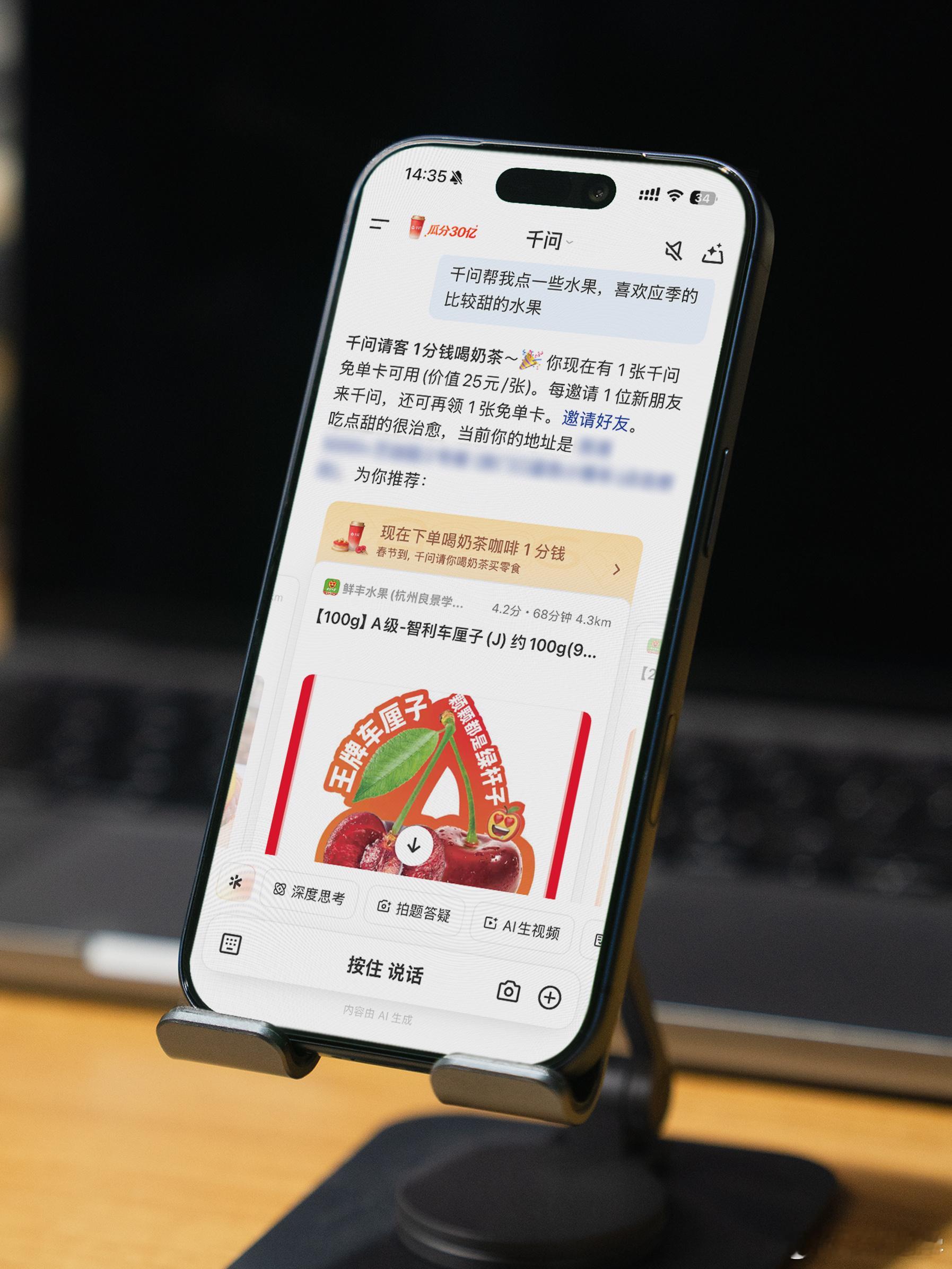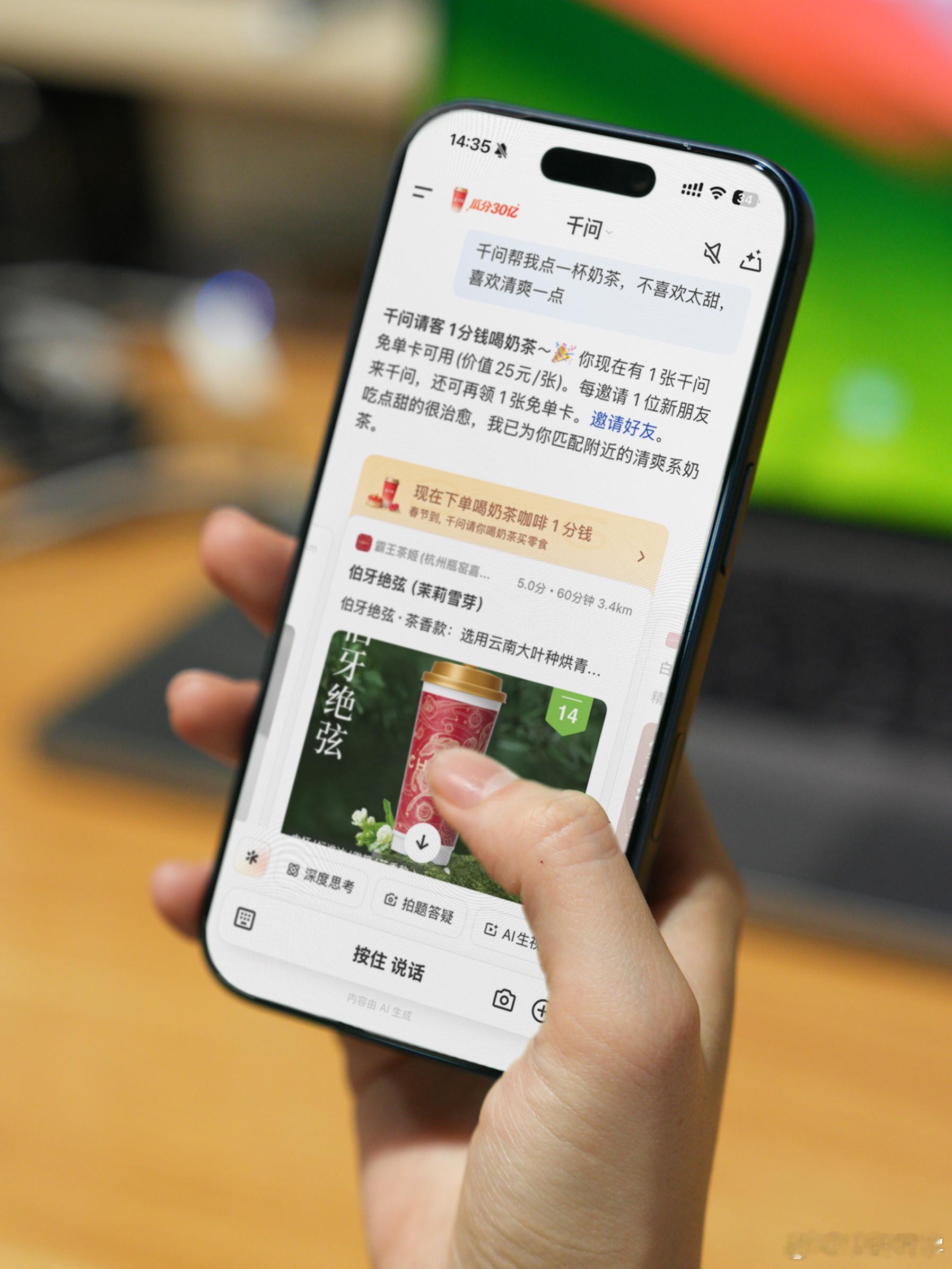 何同学谢谢AI请客 春节伊始,各大APP已经开始狠狠给用户送福利了!千问的一分钱奶茶直接让下载量到TOP1,背后是真真实实给用户带来的福利!数码博主何同学也用上了何同学用千问给全工作室的人都点了下午茶!这待遇实在是羡慕了!