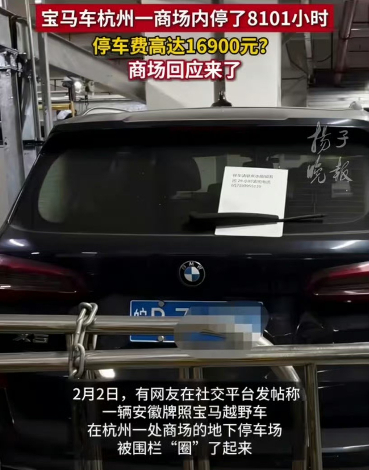 皖F宝马在杭州商场停338天欠费1.69万