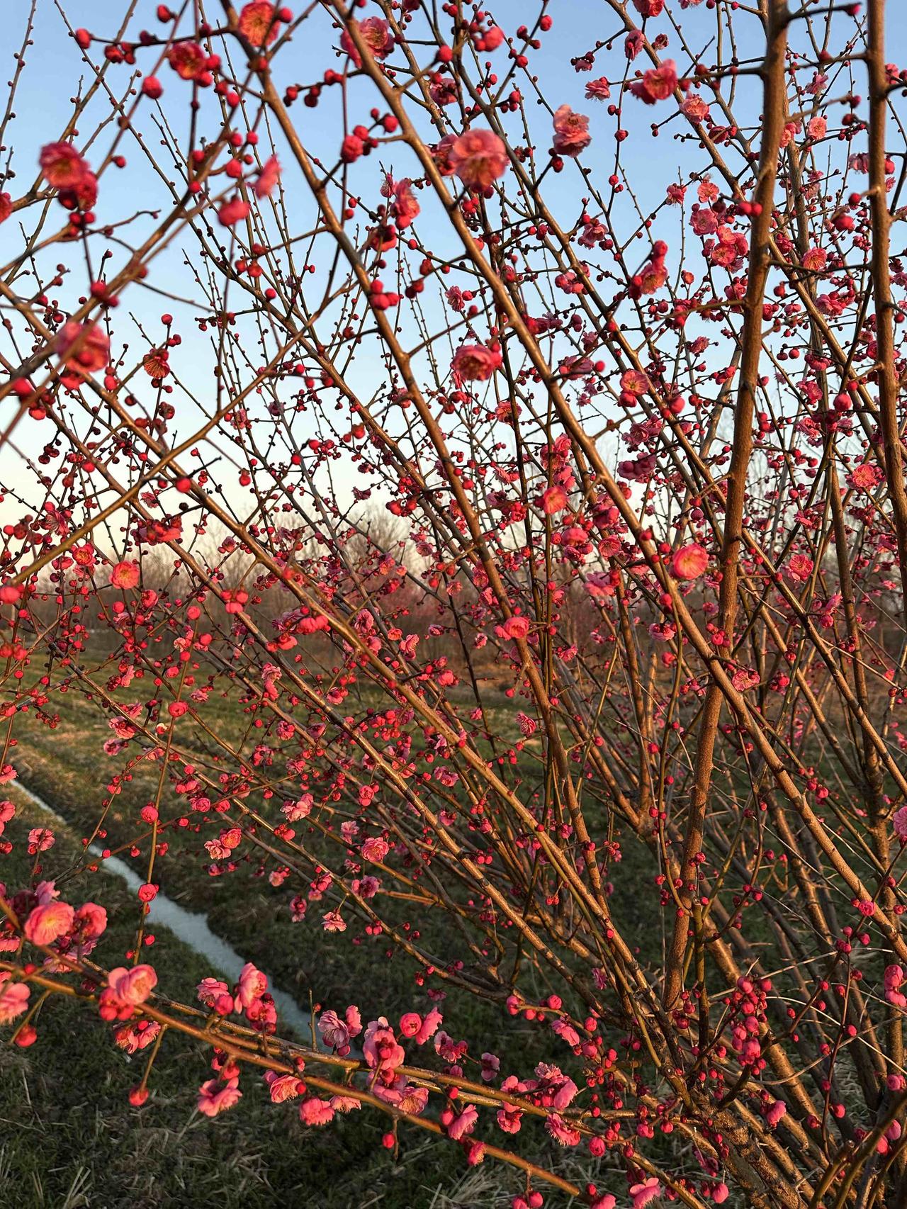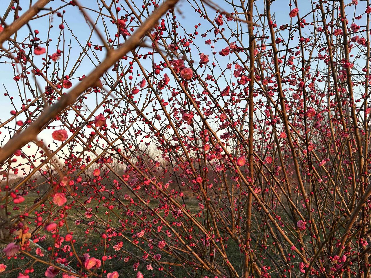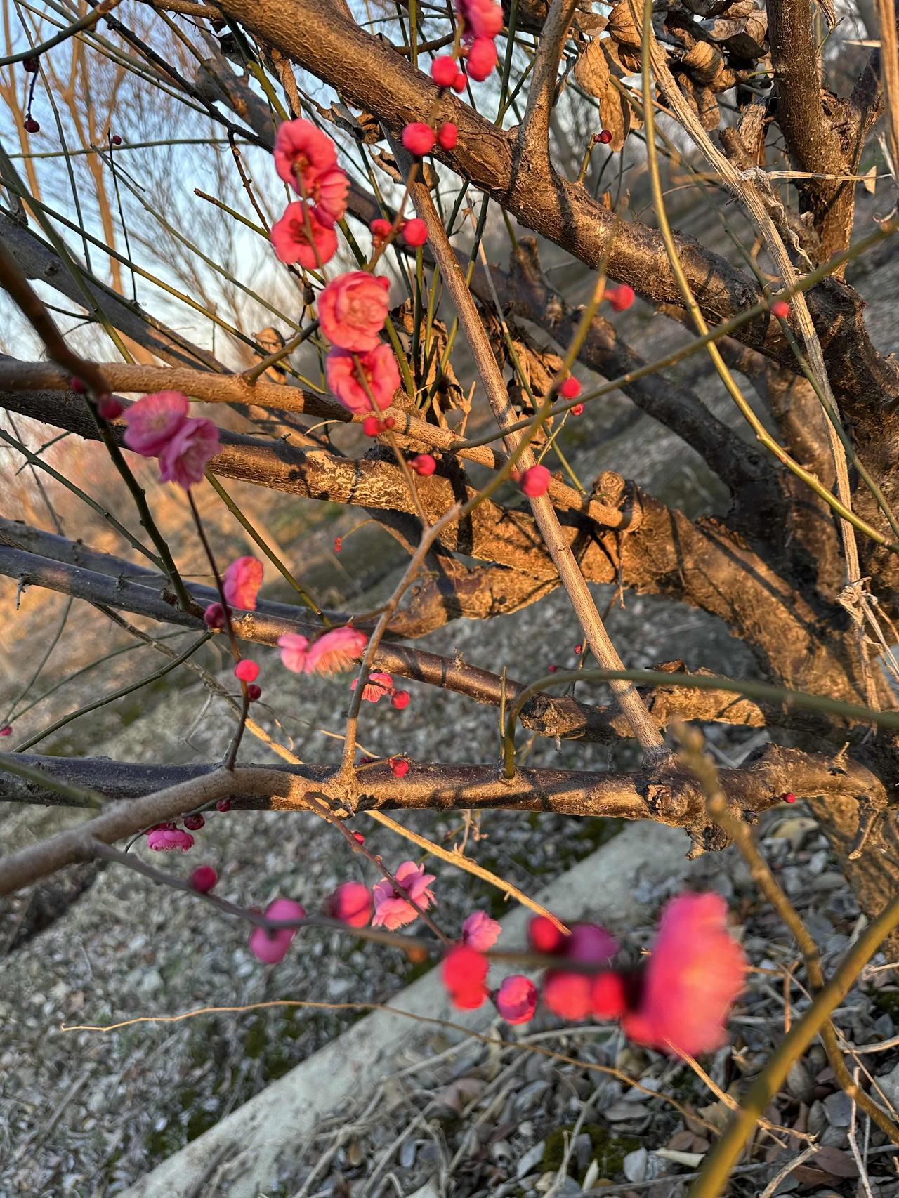 初见梅开,惊艳了冬末 冬寒未散,抬眼却撞见满枝惊艳。粉艳的花苞攒着劲儿绽开,像被