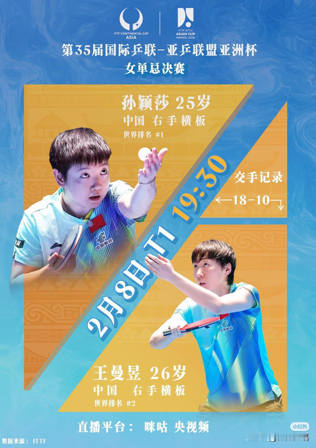 周冠达:“在女单方面,我们国乒的两位选手孙颖莎和王楚钦”,这是解说习惯混双了,一说到王就顺嘴说出来王楚钦了,哈哈,估计一旁的刘国正还没反应过来,小周老师一开始也没意识到自己说错了。 楚钦疑惑,啥时候他要去打女单决赛了,他得打男单决赛啊。今晚的第一场比赛是女单铜牌赛,第三场是女单决赛:孙颖莎VS王曼昱,估计等刘导反应过来,也得笑一下小周了,这比赛还没开始,小周老师就先给大家整节目了。 刚刚看到亚洲杯的冠军奖杯🏆已经送达比赛现场,真的很漂亮啊,今晚的冠军会冠军谁家,我们拭目以待吧。刚刚看到王曼昱和任浩教练已经从酒店出发了,看到王曼昱还穿着羽绒服,晚上会有些凉,她和莎莎的比赛是在19:30。上午莎莎比赛结束后,采访中说希望和曼昱在决赛会师,今晚的比赛她也会抱着拼的心态去打,不管两个人谁夺冠,都会替她们开心的。