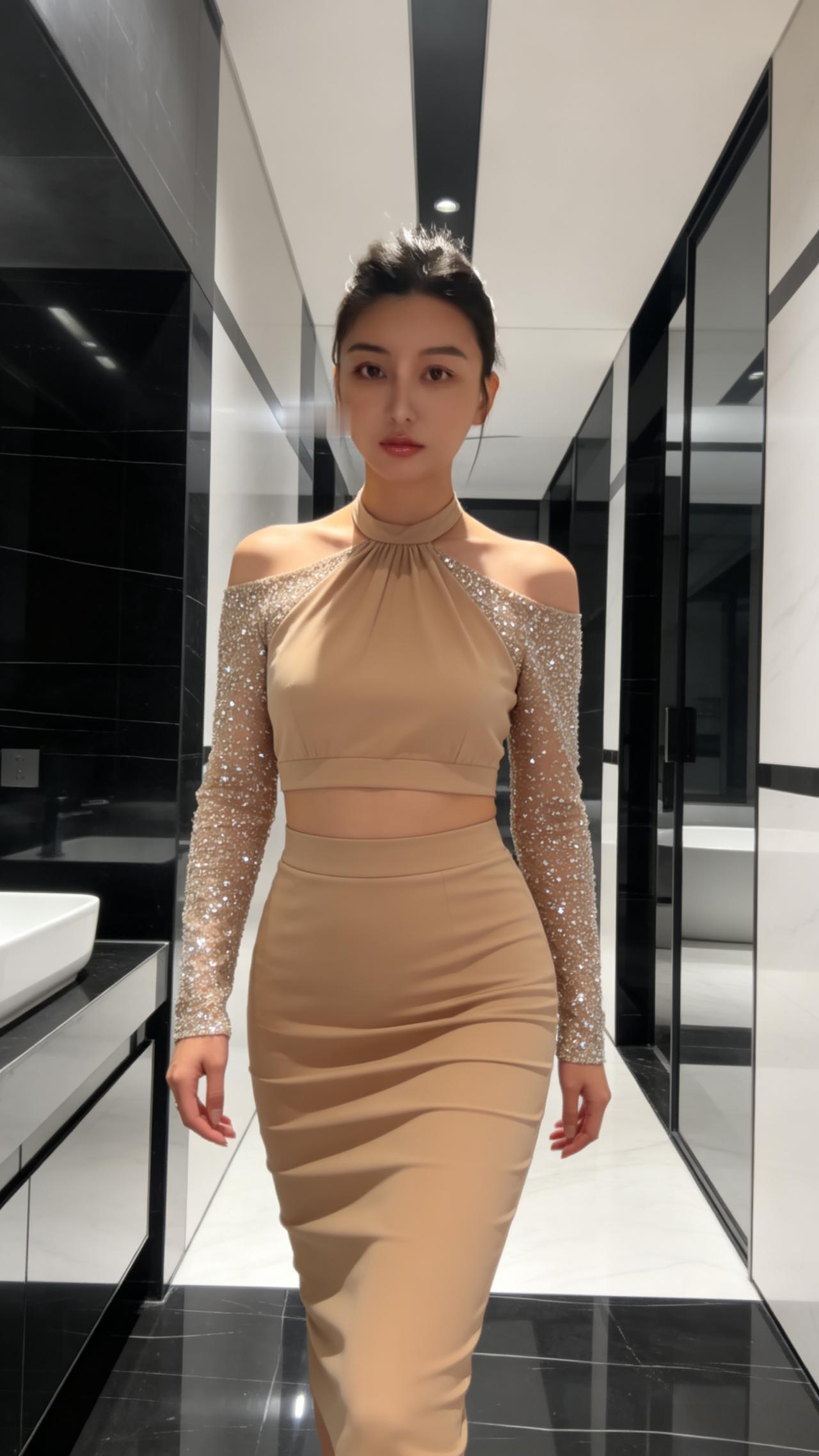 米黄色裙装,漂亮!