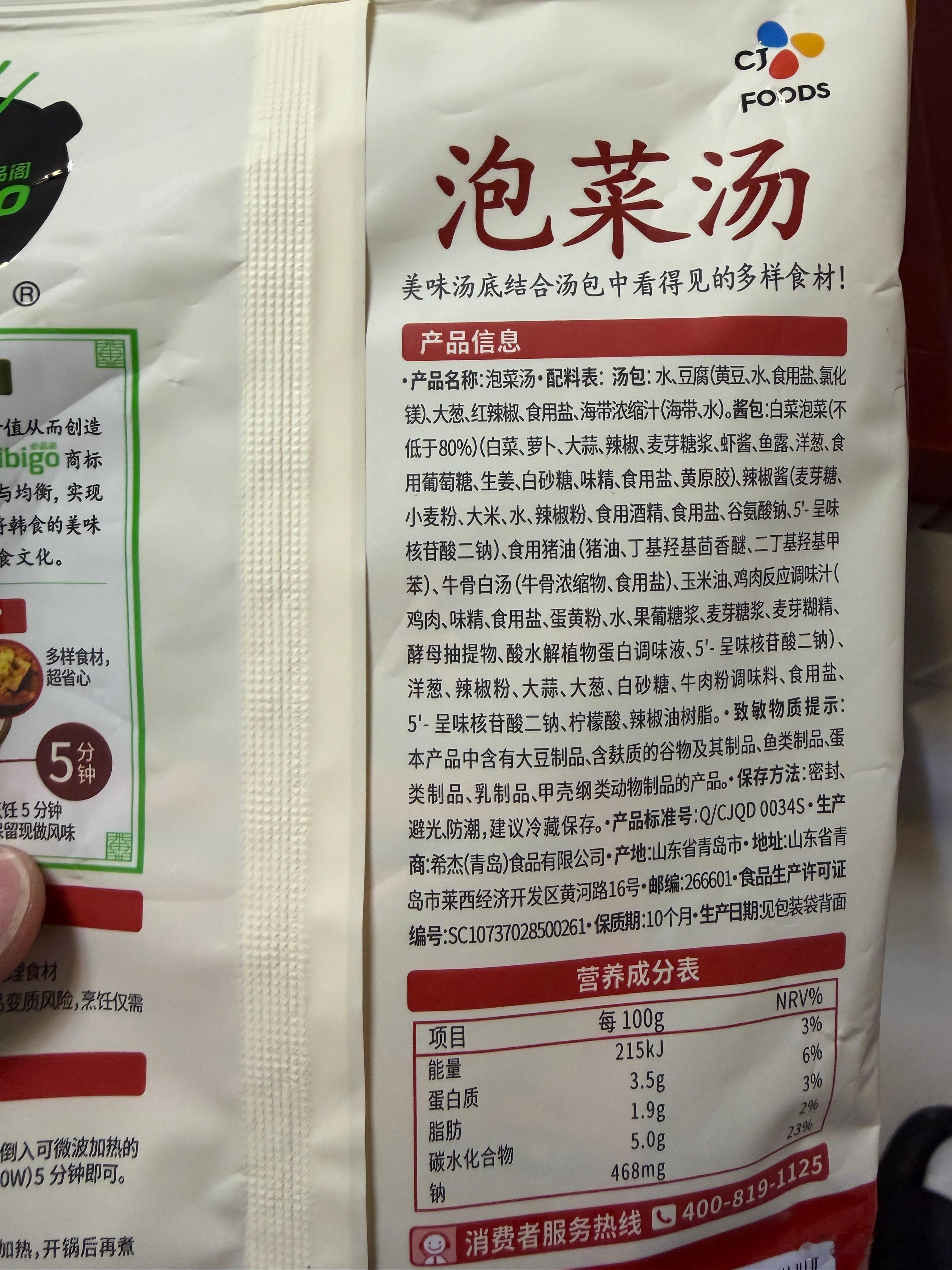寻思晚饭喝点汤,买了个泡菜汤这配料表,比我脚本字数都多