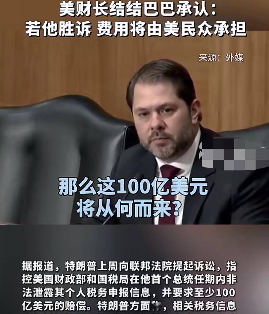 特朗普最近把美国财政部和国税局告上了法庭。他索赔的金额可不小,至少一百亿美元。 事情源于他对自己税务信息被泄露的指控。特朗普方面说,在他第一个总统任期里,国税局内部有“行为不当、带有政治动机”的员工,把他个人和家族的报税信息泄露给了《纽约时报》等媒体。他认为这严重侵犯了自己的隐私权和合法权利。 这个案子的关键回应,来自美国财政部长贝森特。2月5号在参议院听证会上,她被直接问到,如果特朗普胜诉,这笔赔偿金由谁来付。贝森特有点结巴地承认,钱会从财政部的“一般账户”里出。当被追问这个账户的钱是否来自纳税人时,她给出了肯定的回答:“呃,是的。” 不过贝森特也强调,自己无权决定是否支付,最终要等司法部的指示。这等于把皮球踢了出去。 对特朗普来说,用高额诉讼来维权或反击,似乎成了一种模式。公开记录显示,就在过去一年多里,他还曾起诉过媒体大亨默多克和新闻集团,索赔一百亿美元;也起诉过《纽约时报》和出版商,索赔一百五十亿美元。理由都是诽谤。 所以,眼下这个案子,焦点就集中在两个问题上:政府机构是否真的违法泄露了总统的隐私?如果败诉,天价赔偿要由全体纳税人买单,这又是否合理?案件的走向将由美国司法部主导,而最终的结果,很可能真的会落到每个普通美国人的肩上。