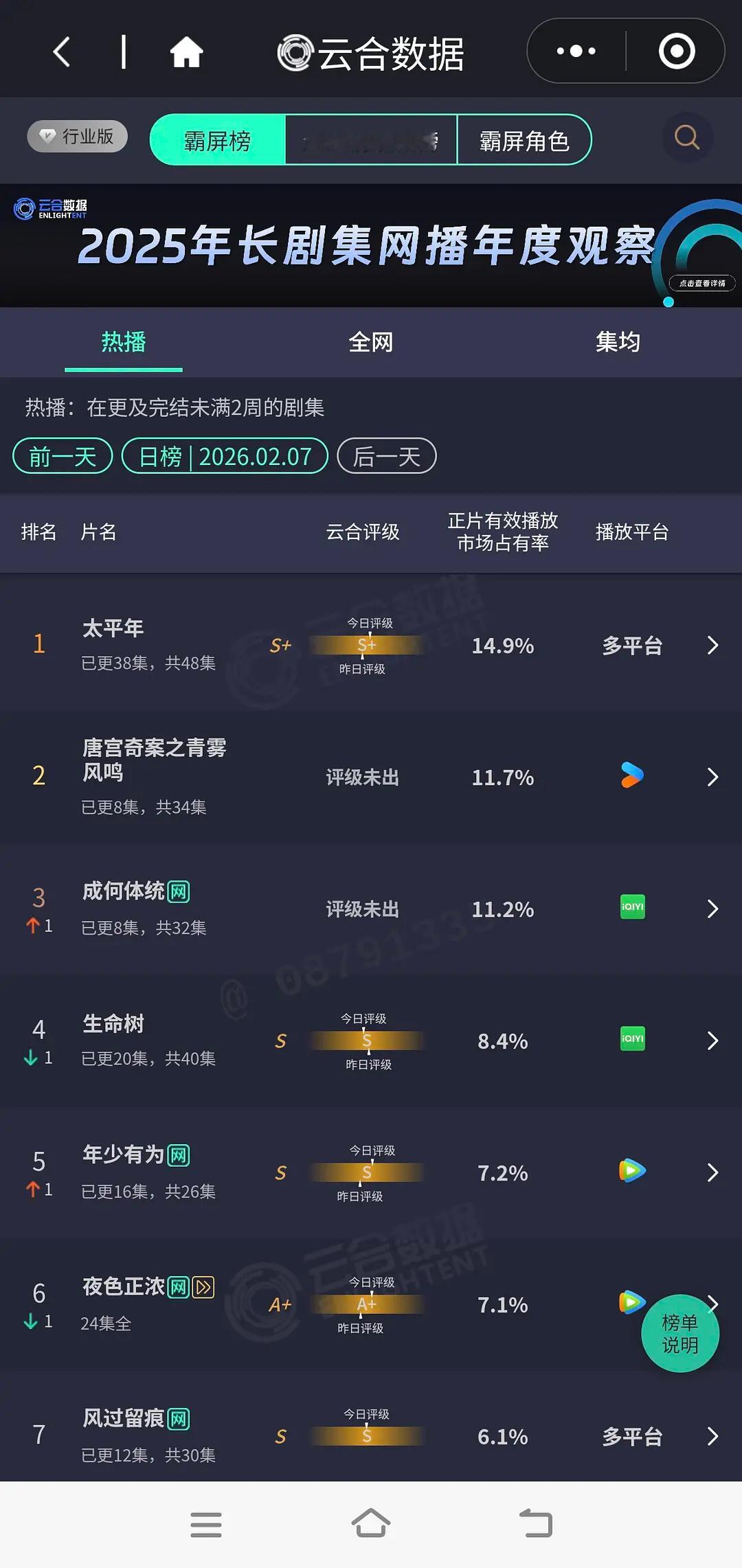 成何体统今天已经酷云第二了!太平年还是第一,感觉明天肯定登顶了