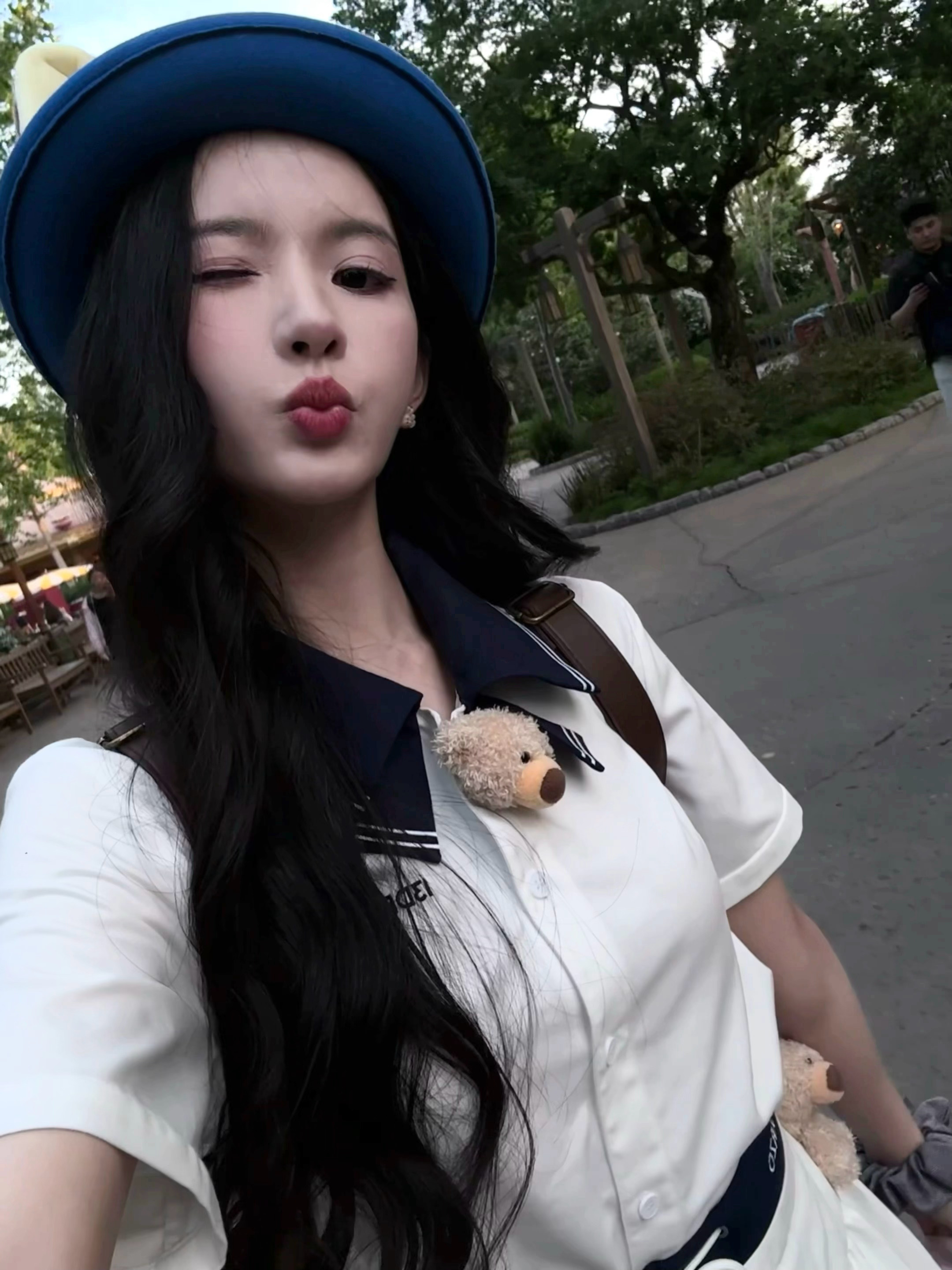 张天爱跟素人合影,胯真的好宽,大宅院似的