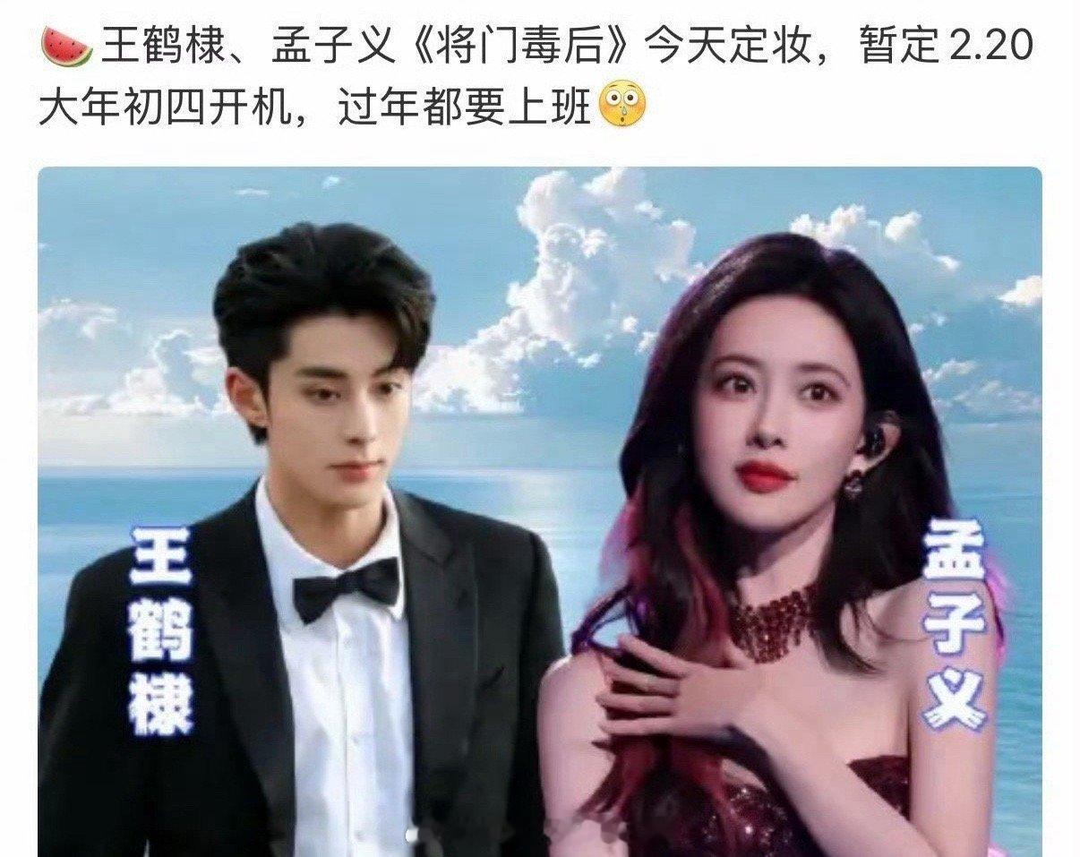 🍉王鹤棣、孟子义《将门毒后》今天定妆,预计2.20开机