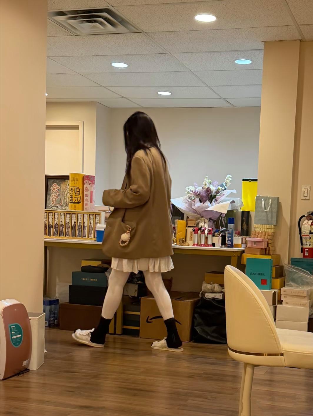 王祖贤现身花店,打扮如少女,长发飘飘,身材高挑修长,身穿公主裙,雪地靴,五十岁的王祖贤还是有一颗少女心!