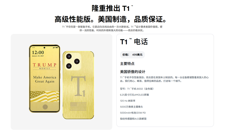 “特朗普手机”实机曝光,与渲染图货不对板,后摄DECO从原来长得很像iPhone Pro系列的样子变成了跑道形状,镜头排布也变成了一条直线,而且间距还不一致,T1标志在正式发布前可能会去掉,但美国国旗和标志性的土豪金配色将会保留