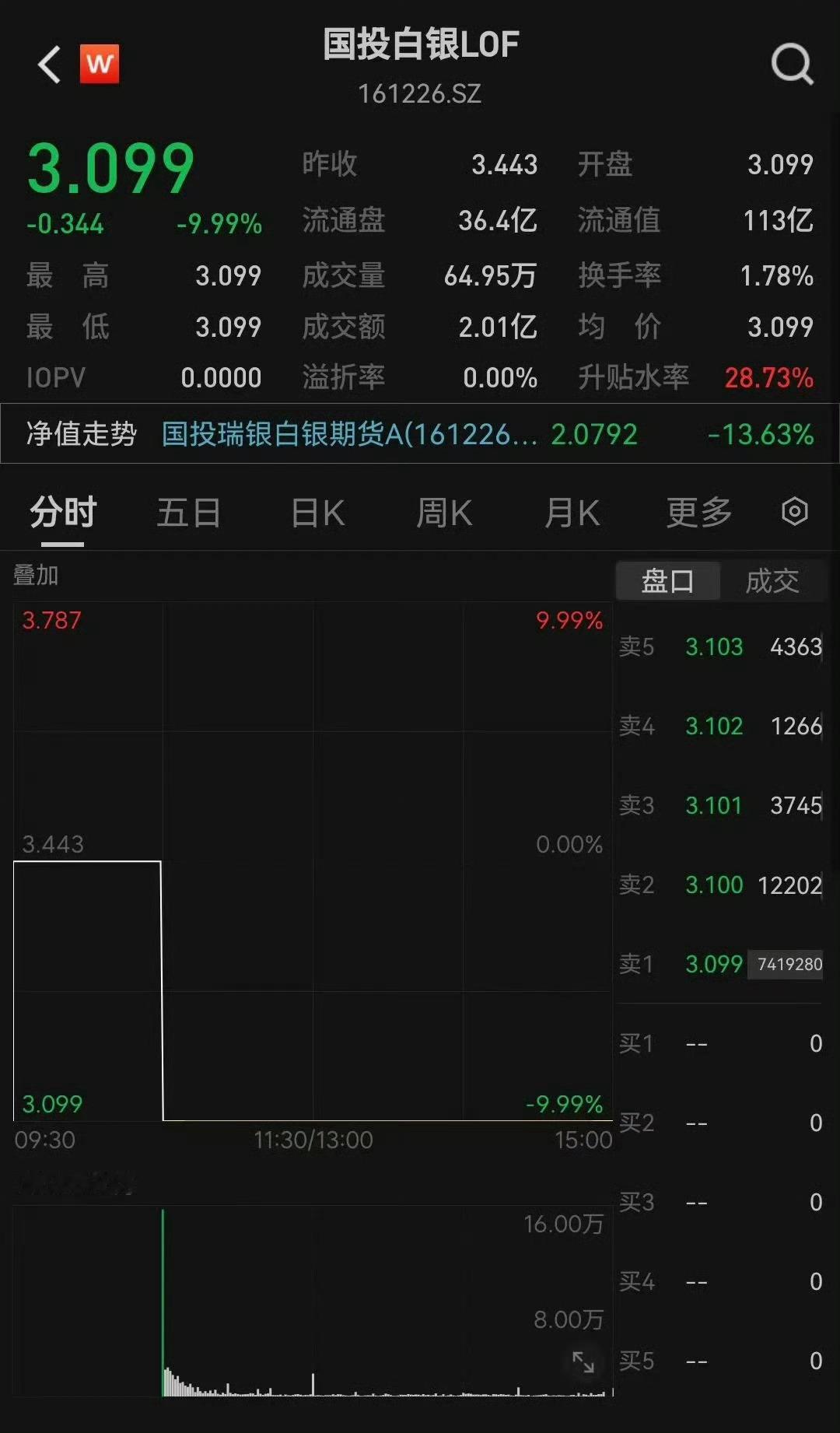 国投白银LOF停复牌安排虽然那天跌了31个点之前还有人说转场内场内这几天是不是都是跌停