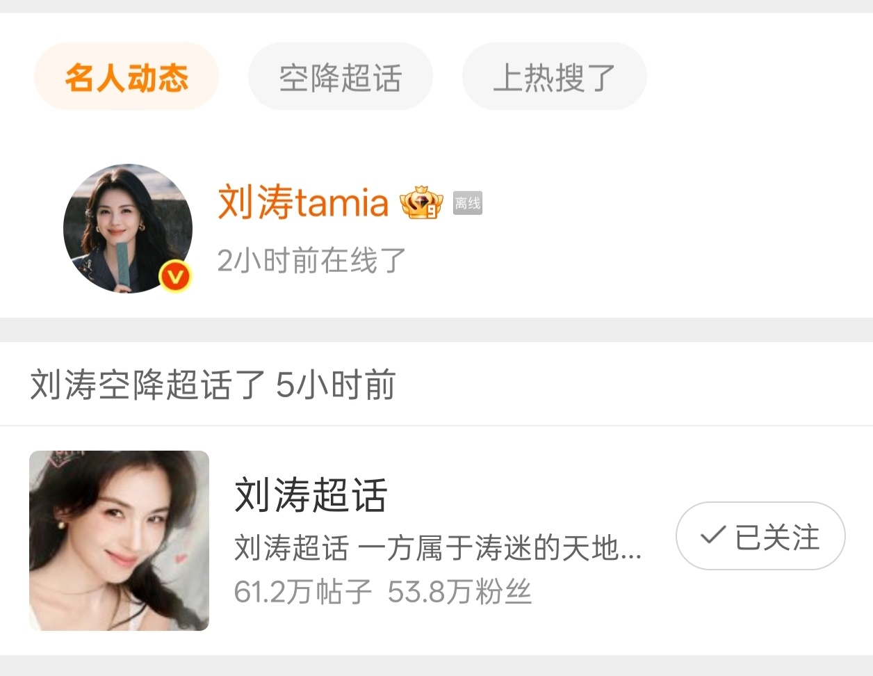 我都好久没发超话了,怀疑刘涛在勾引我发超话
