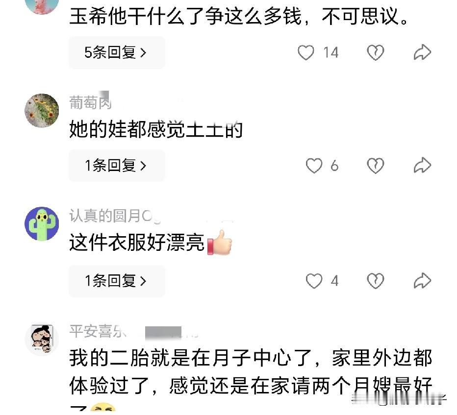 玉希四胎怀孕31周了,很快又要生了!这胎怀的一点不累,也没有任何孕吐难受,精力还是很旺盛。 果然还是年轻,才28岁的年龄都要成为四个孩子妈妈。 玉希又去看月子中心了,看杭州最好的 ,他一身白色风衣显得很贵气,孕晚期还可以看出来细腰,走路轻巧 。 总共看了两家,都是七十多平的 ,有顶级环境和服务 ,配有育婴师营养师 私人医生等等,看了环境,是真的很好,还有私人影院,一开窗户能看到湖景。 玉希气场全开,对每一处都细心观看,还想着三个孩子来的时候能不能住的下,所以必须要宽敞。 工作人员回复价格42天大概要六十多万 这价格真的吓跑一群人,贫穷限制了想象呀。 网友好奇:怎么敢这么花钱? 四胎了,之后就要封肚了,肯定要好好的养身体,多少钱没有身体重要。 对他们来说,这钱虽然不算少,但也不会有任何压力。 钱挣得多,花的也快! 一个广西农村出来的,在杭州买了别墅,事业家庭都上了一个层次,家里保姆都好几个,完全改变了阶级。 大家觉得呢?这样的家庭真的孩子越多越好!