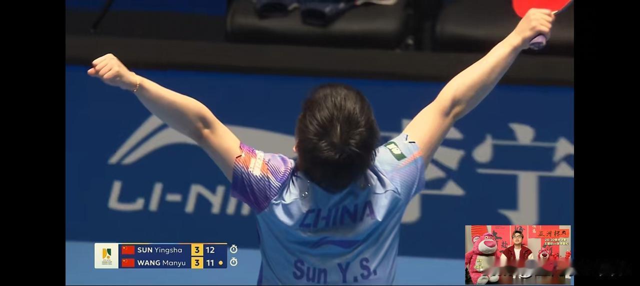 恭喜这个紫色芋泥小豆包得偿所愿, 苦战七局有争议球的情况下, 莎莎还是沉下心来处理球, 两分之差赢下比赛, 两次参赛经历, 亚洲杯冠军收入囊中。 这次比赛后, 莎莎不会再去一个人悄悄吃饭了。 曼昱表现也很优秀, 越到后面越沉稳。 既生瑜何生亮, 看她俩的比赛, 比看打外协的更考验心脏。