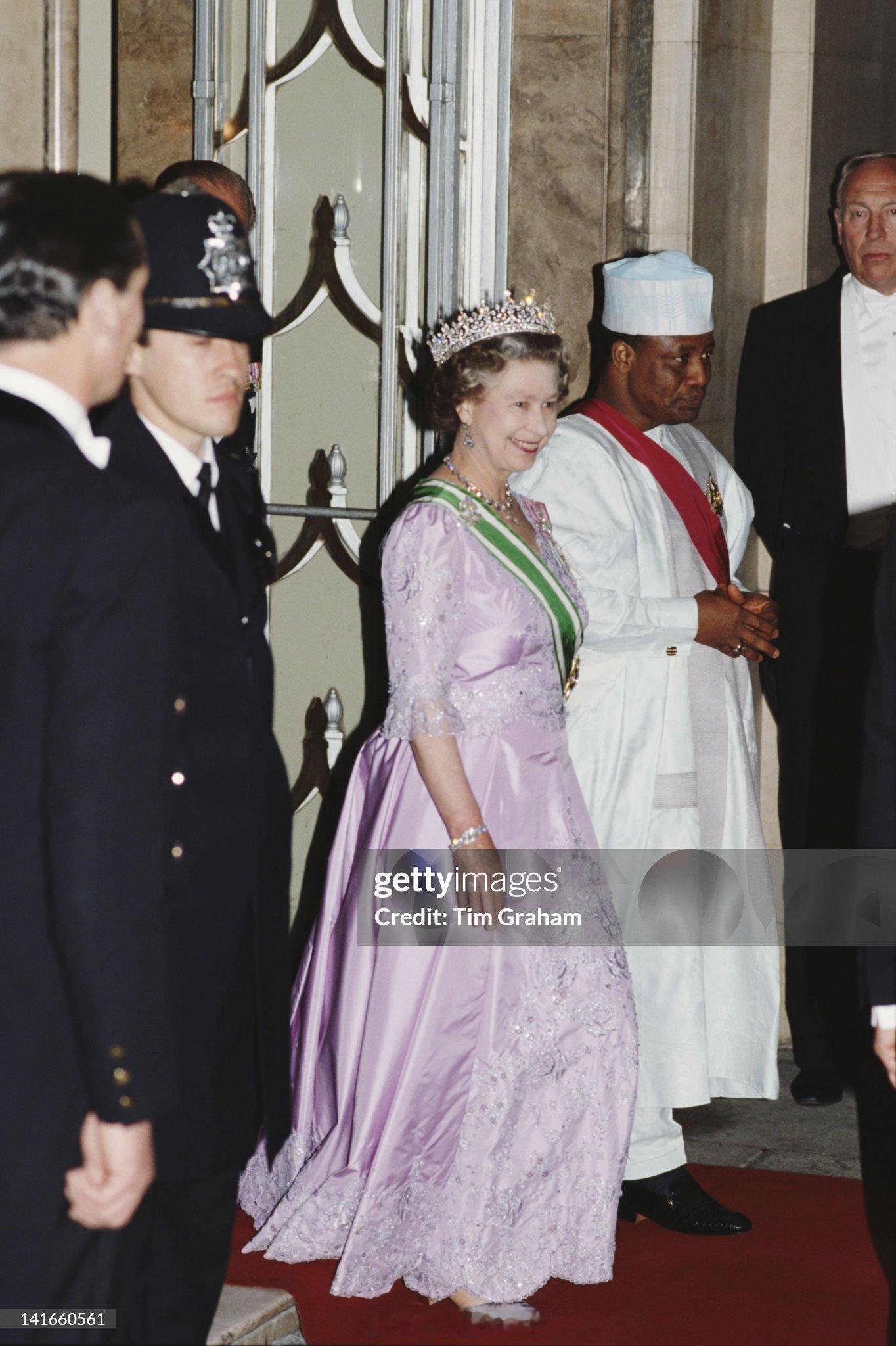 1989年5月12日,伊丽莎白二世女王率领她家一众王室成员在伦敦Claridge's参加尼日利亚总统Ibrahim Babangid主持的晚宴🎖️她那时候佩戴的是她那年才获得的尼日利亚联邦共和国大司令官勋章(Grand Commander of the Order of the Federal Republic,简称GCFR),该勋章是尼日利亚最高荣誉🇳🇬