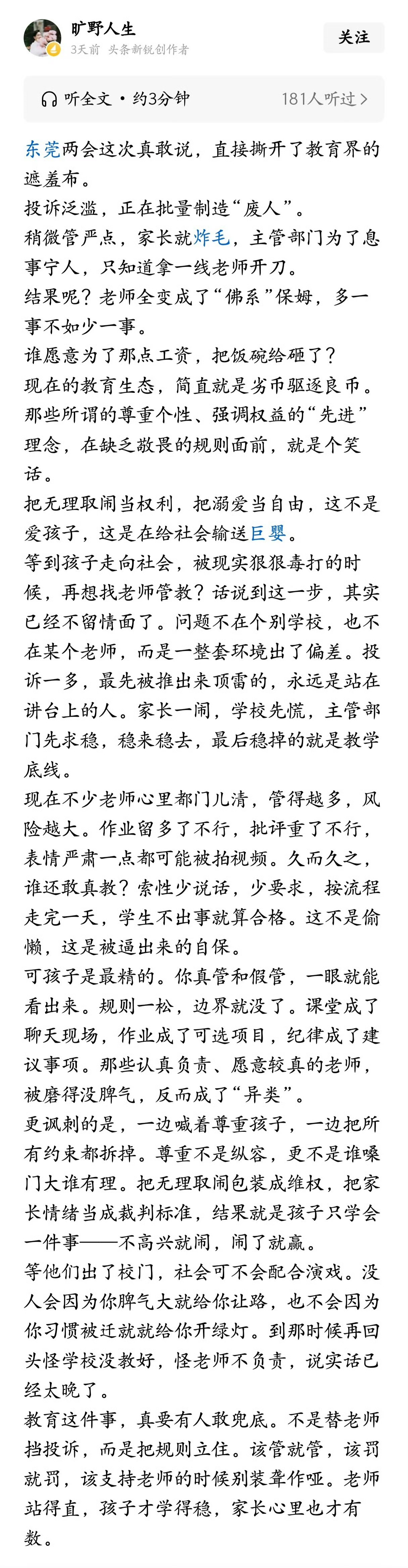 教育这事,一定要有人敢兜底,家长和老师,谁有理就支持谁!