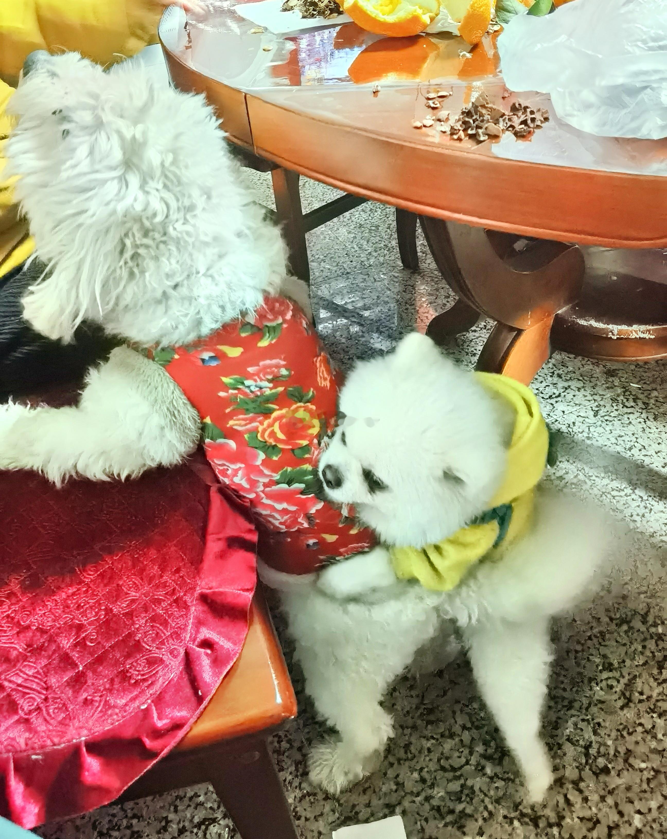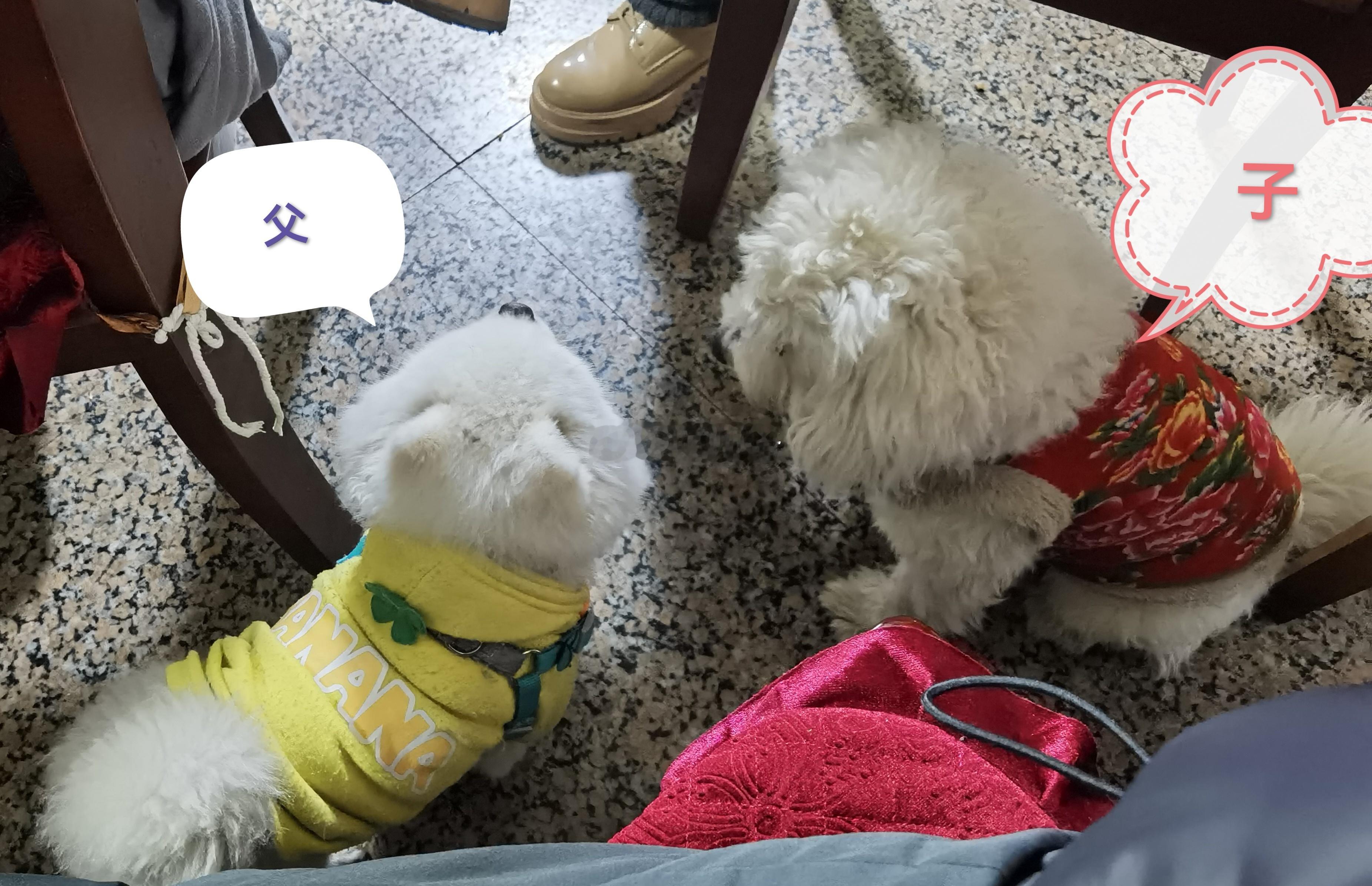 春节快到了,给它俩父子团聚一下。儿子现在的体型是它老爸的一倍。