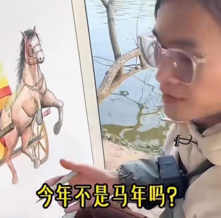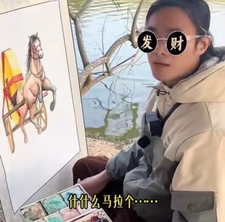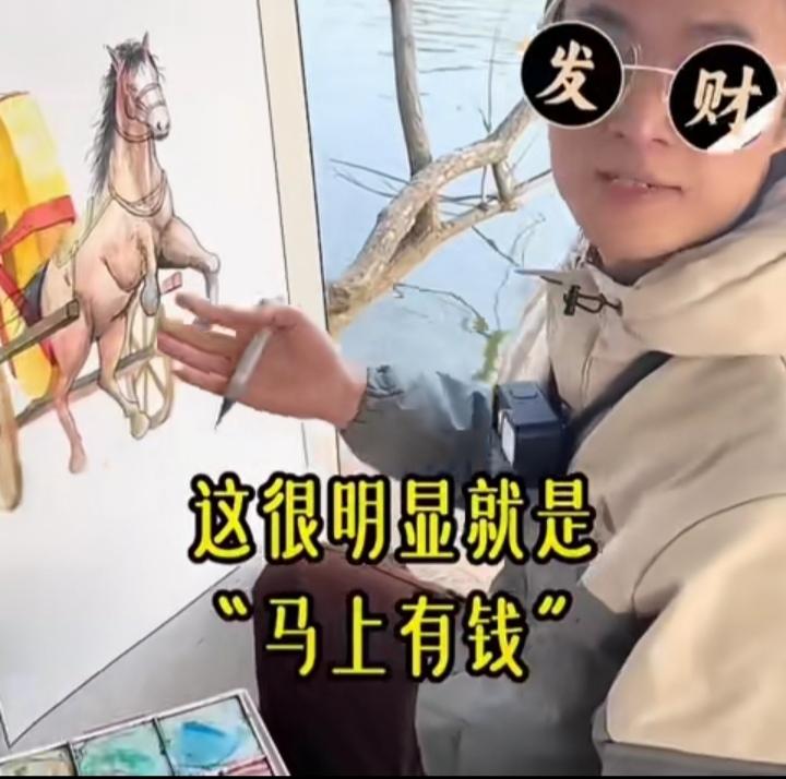 哈哈哈,[泪奔]笑惨了!一位在湖边认真画画的年轻小伙,被路过的姑娘问蒙圈了! 今天阳光明媚,一年轻姑娘从湖边路过,看到一帅小伙在这画画。姑娘上前搭讪小伙:“帅哥,你画的是什么呀?”小伙说,今年不是马年了吗?所以我想马上有钱,你看这画很明显就是“马上有钱”嘛!姑娘左瞅瞅右瞅瞅说,你这画的不对呀,这不是“马拉个币”吗? 小伙:什什什么,马拉个……? 哈哈哈!话说姑娘你是真虎呀,把天聊死了! 记得十二年前也有个马年段子。某大龄剩女在办公桌上摆了一匹马,马背上还有两头小象,旁边同事好奇问她是什么寓意?她回答说:这叫“马上有对象”,希望今年脱单!另一嘴欠同事说:“不对,你这分明是“对象马上跑”!”