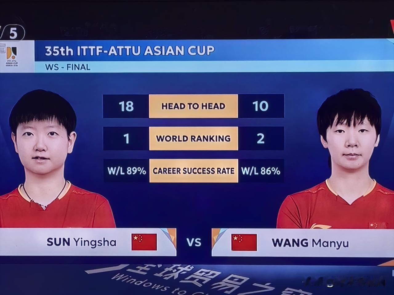乒乓球亚洲杯女单决赛,孙颖莎4:3战胜王曼昱夺冠。本场比赛没有失败者,王曼昱虽败犹荣。 俩人从小到大即是对手也是朋友,战术上双方没有秘密可言。 相对莎莎,曼玉有点大器晚成。俩人生涯共有28次交手,莎莎18次获胜,但最近两年曼玉则胜多负少,曾在上届亚洲杯,和全运会都战胜了孙颖莎。 俩人成长到现在,一个第一,一个第二。都是当今世界顶尖高手。 本场比赛双方势均力敌,除开始三局试探性之外,其他几局也都很胶着。各赢三局后,决胜局也打到超分,才分出胜负。胜负也在一念之间。显示不出实力差距。 双方都是好样的,也希望球迷能支持球员之间的良性竞争。