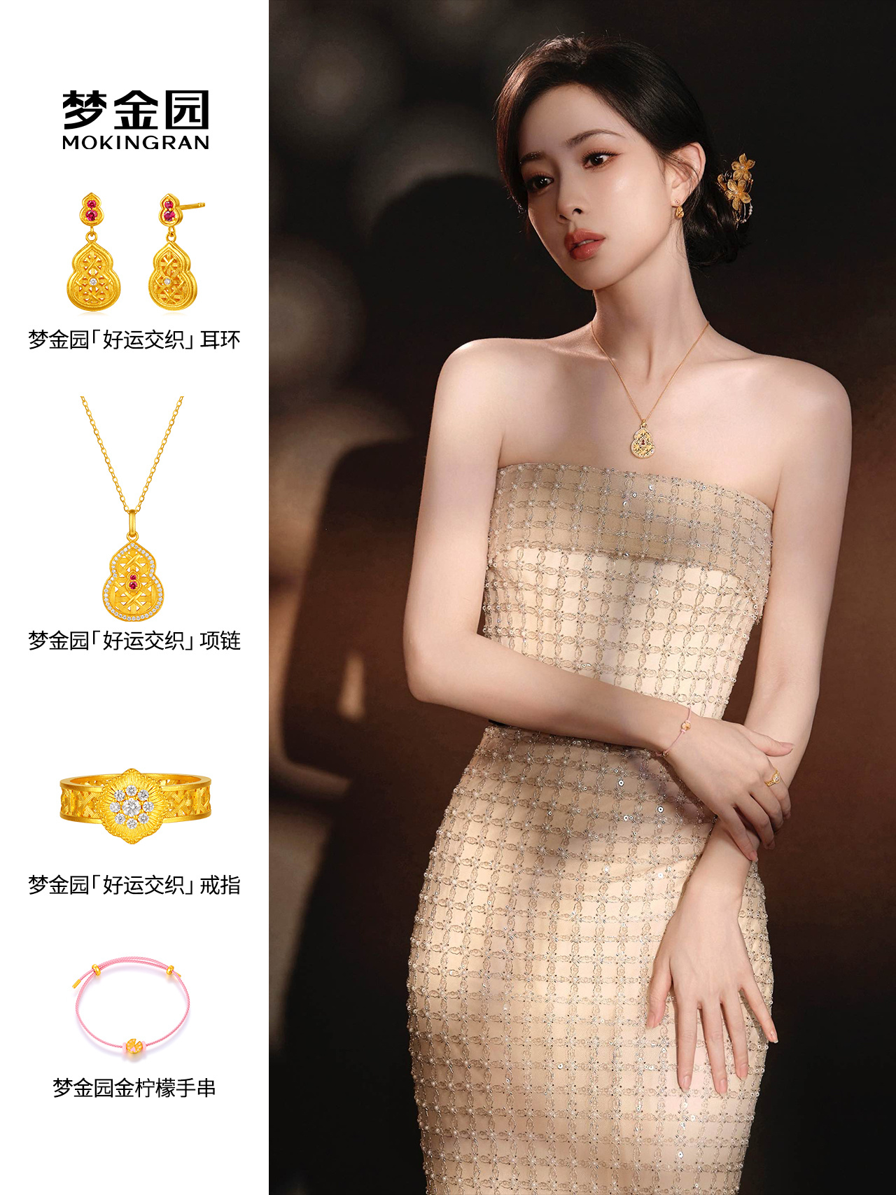 时尚圈开年惊喜!孟子义作为梦金园亚太区代言人,线下活动以“鎏金公主”造型惊艳全场!她的梦金园好运交织系列堪称点睛之笔,编织纹理如同流动的金色光芒,与闪耀的红色宝石交织,高级感瞬间拉满。妆造封神的同时,更是将“织梦成真”的大女主气场戴在了身上,新年的搭配趋势,看孟姐就对了!孟子义闪现青岛万象城梦金园黄金孟子义梦金园亚太区品牌代言人孟子义同款好运交织梦金园葫芦吊坠