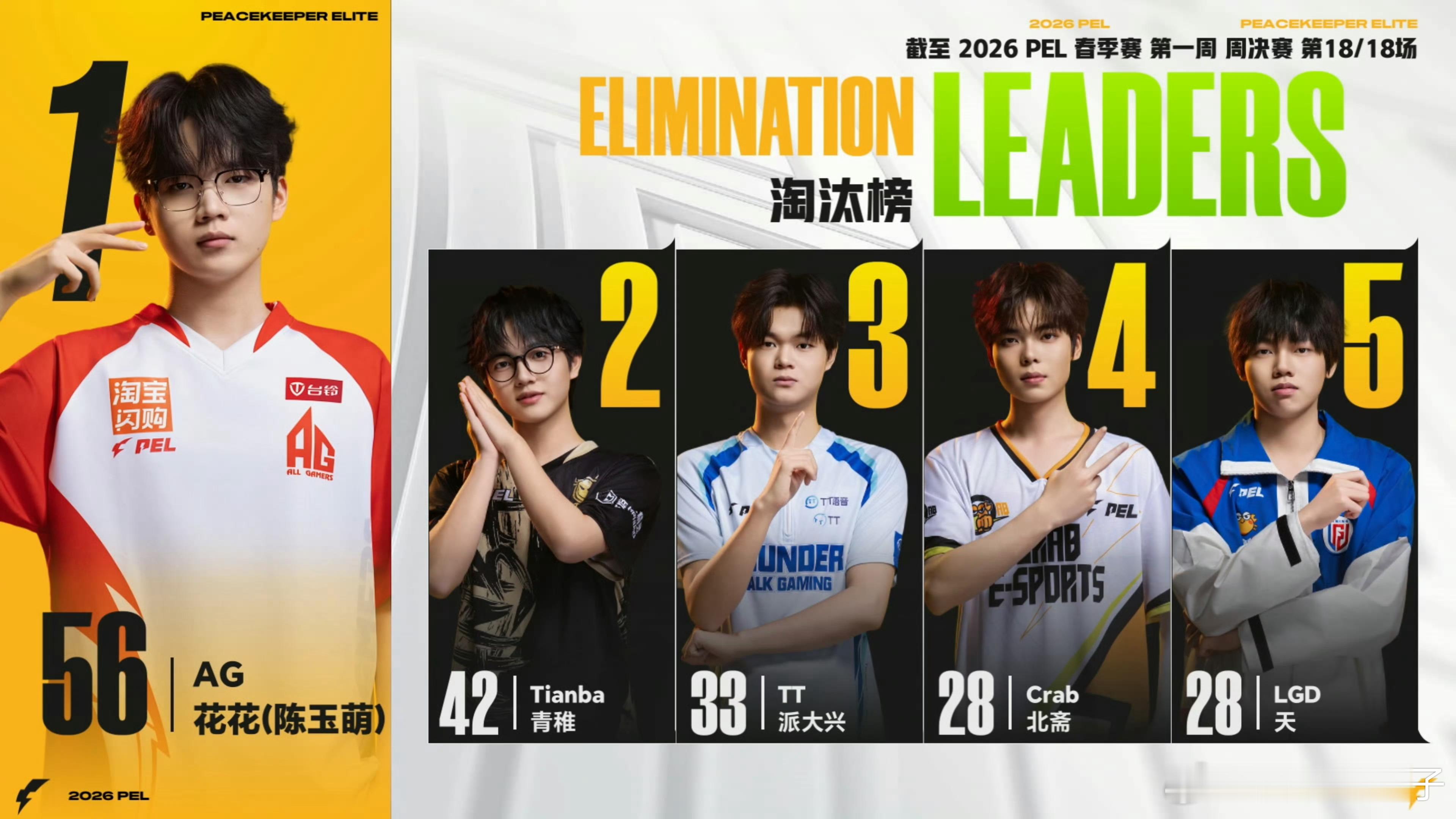 AG花花破纪录获周MVP 吓昏了,花花18场5个MVP无悬念收获周MVP,单周淘汰56个打破纪录,个人56次的淘汰数,甚至比六支战队还要多AG和平精英