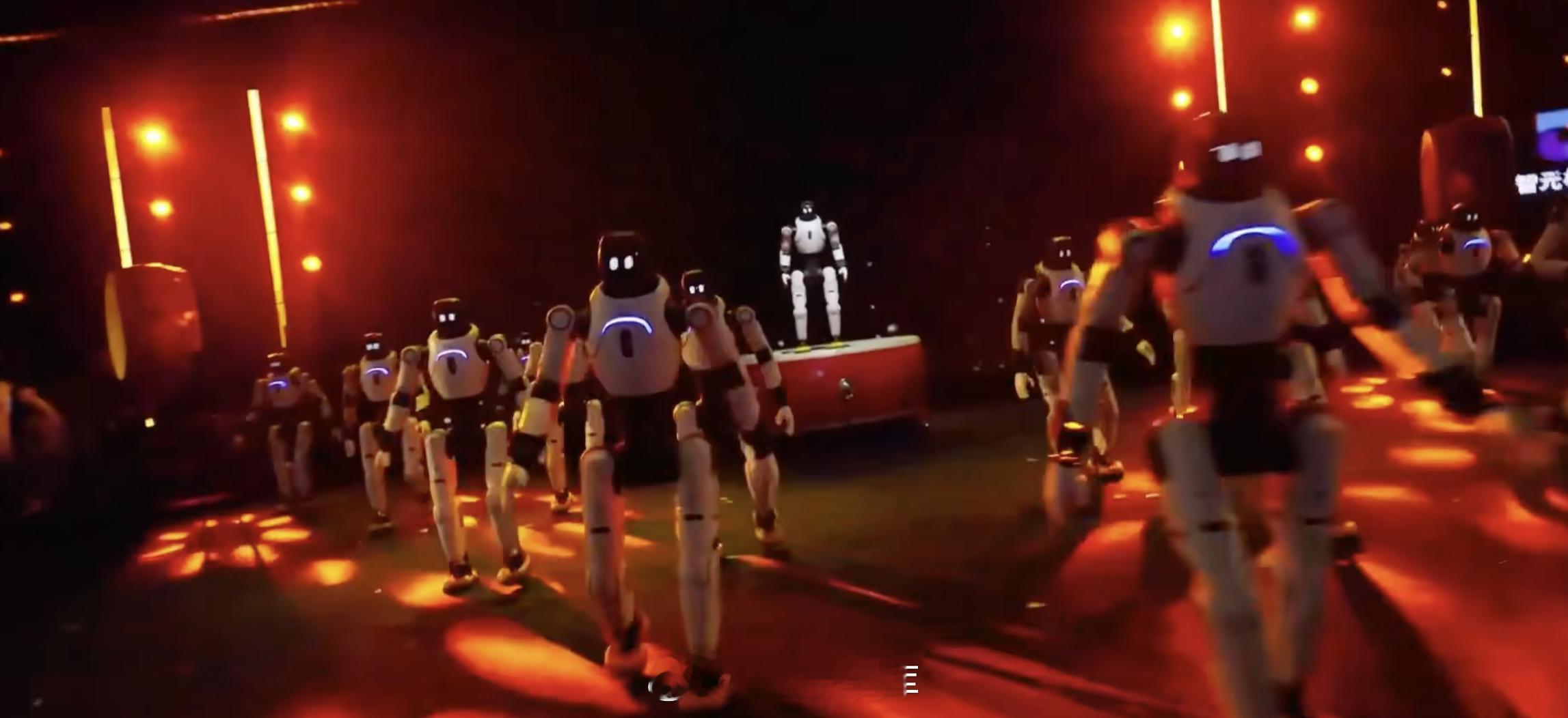 比较有看点的是可能同时有大几十台机器人的调度控制,而且一堆灵犀 X2 还分组做群控,能实际拍成节目就已经证明了本体可靠性和动作训练很优秀了。