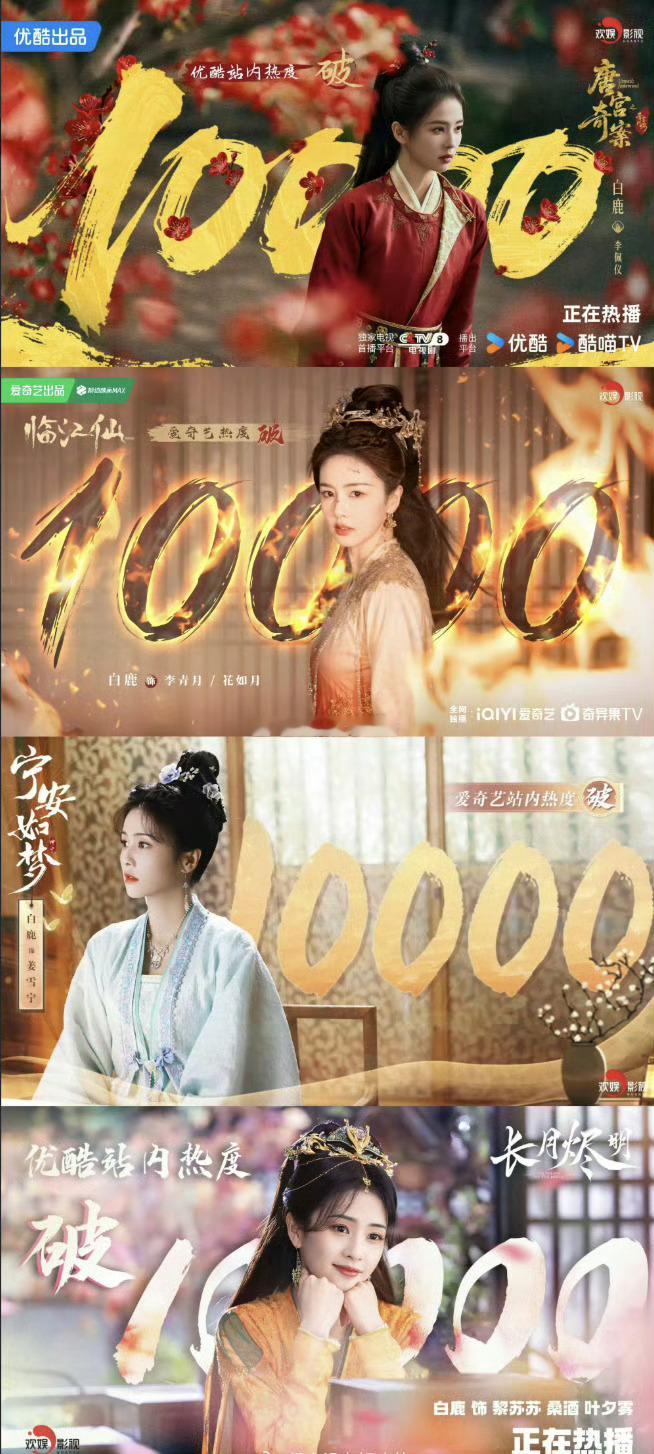 白鹿双平台四破万,实绩图又更新了,每年都在刷新扛剧能力